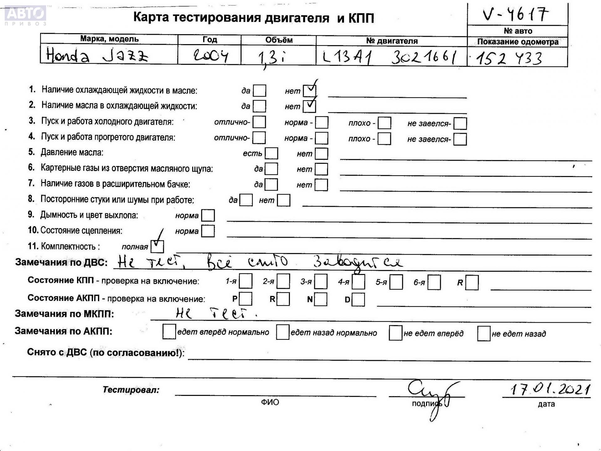 | Автомобиль / VIN: | V4617 JHMGD17504S221854 |