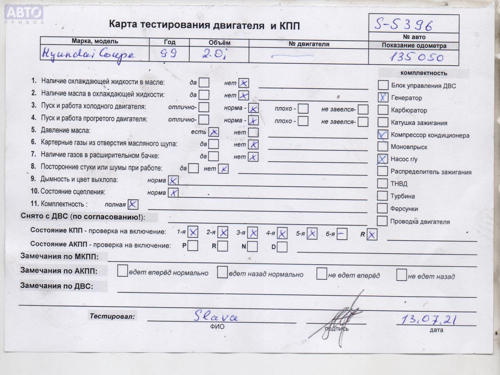 | Марка / Модель / Год: | Hyundai Coupe (1996-2001) 1999 |