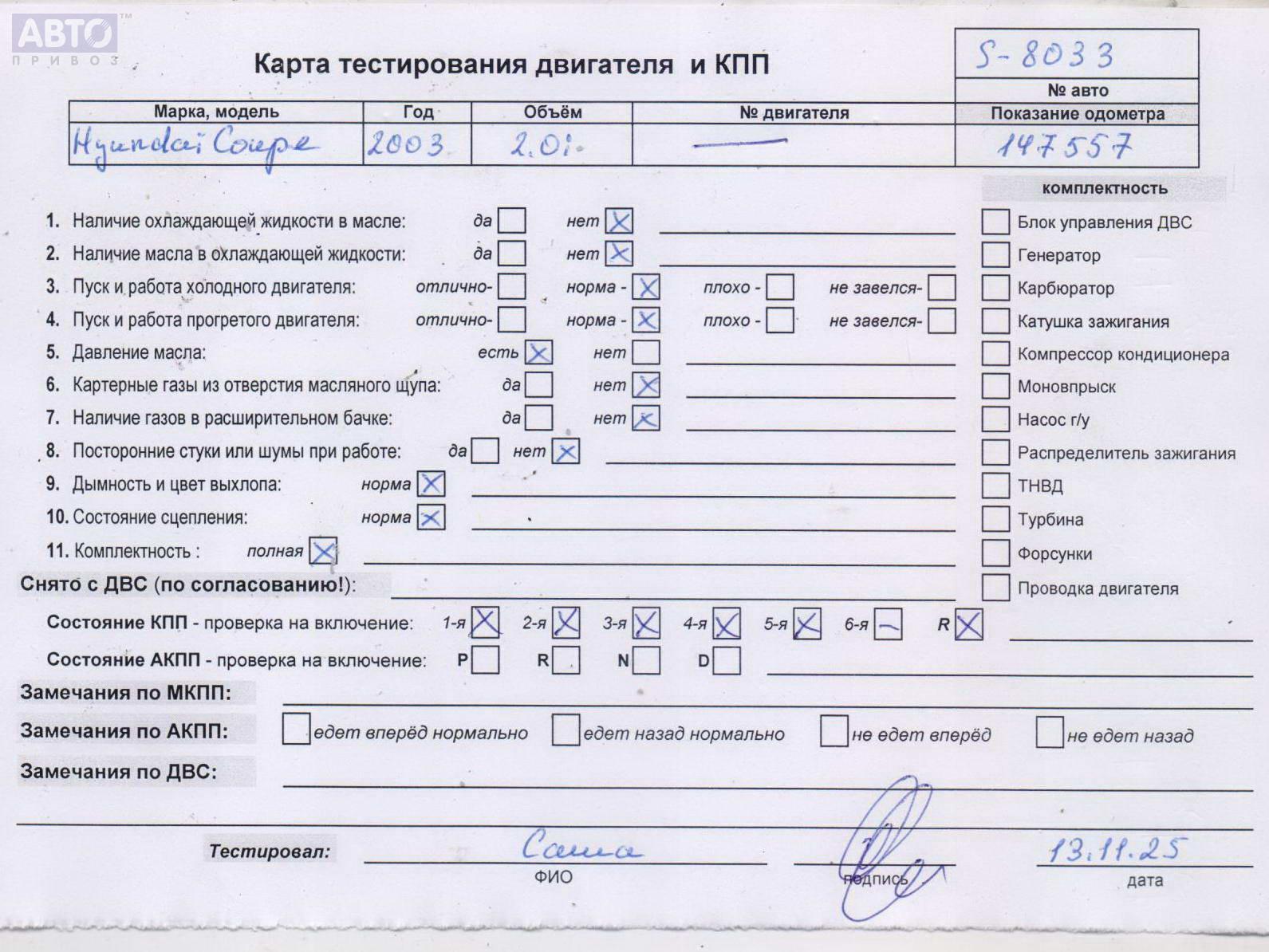 | Марка / Модель / Год: | Hyundai Coupe (2002-2008) 2002 |