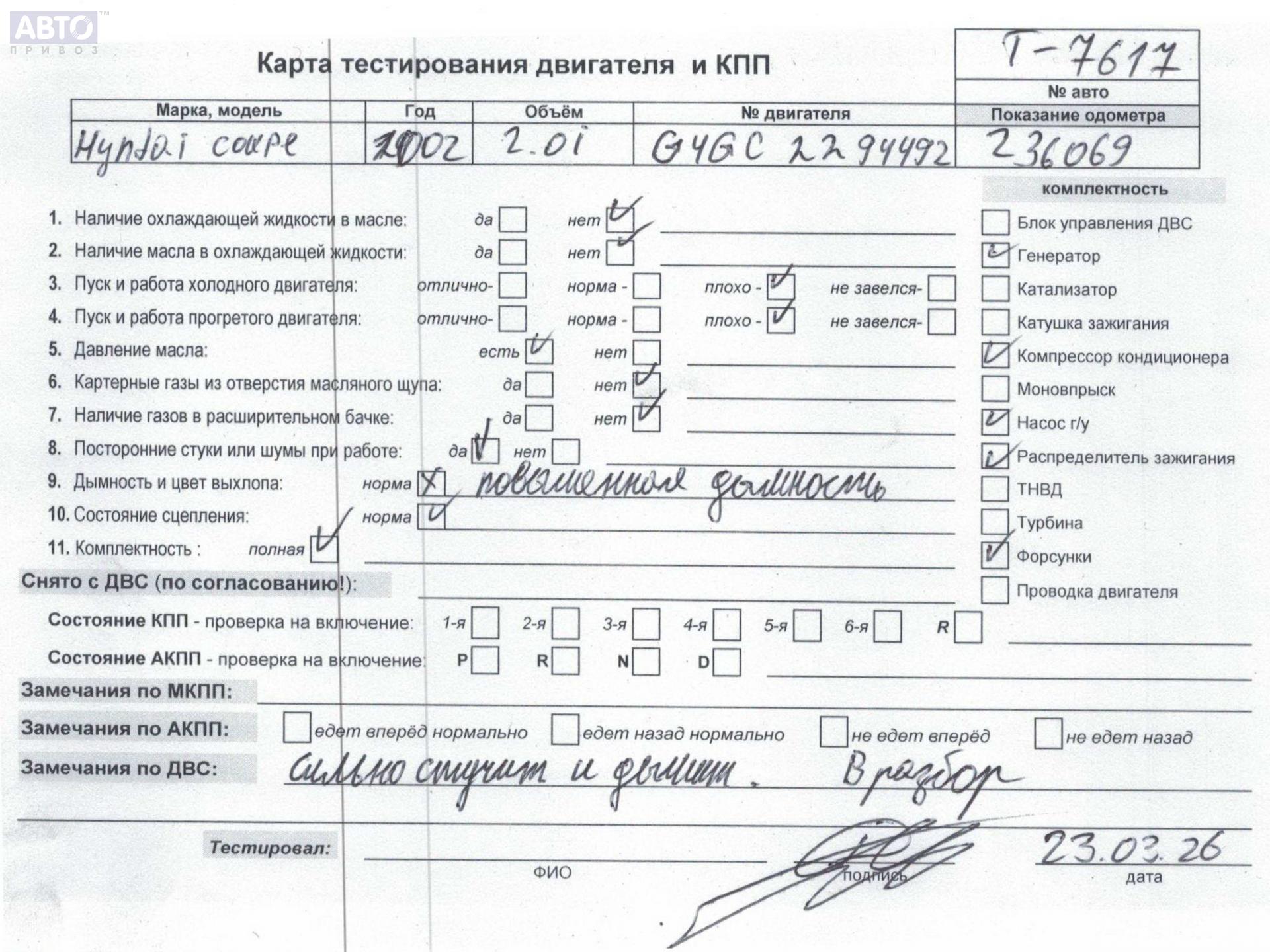 | Марка / Модель / Год: | Hyundai Coupe (2002-2008) 2002 |