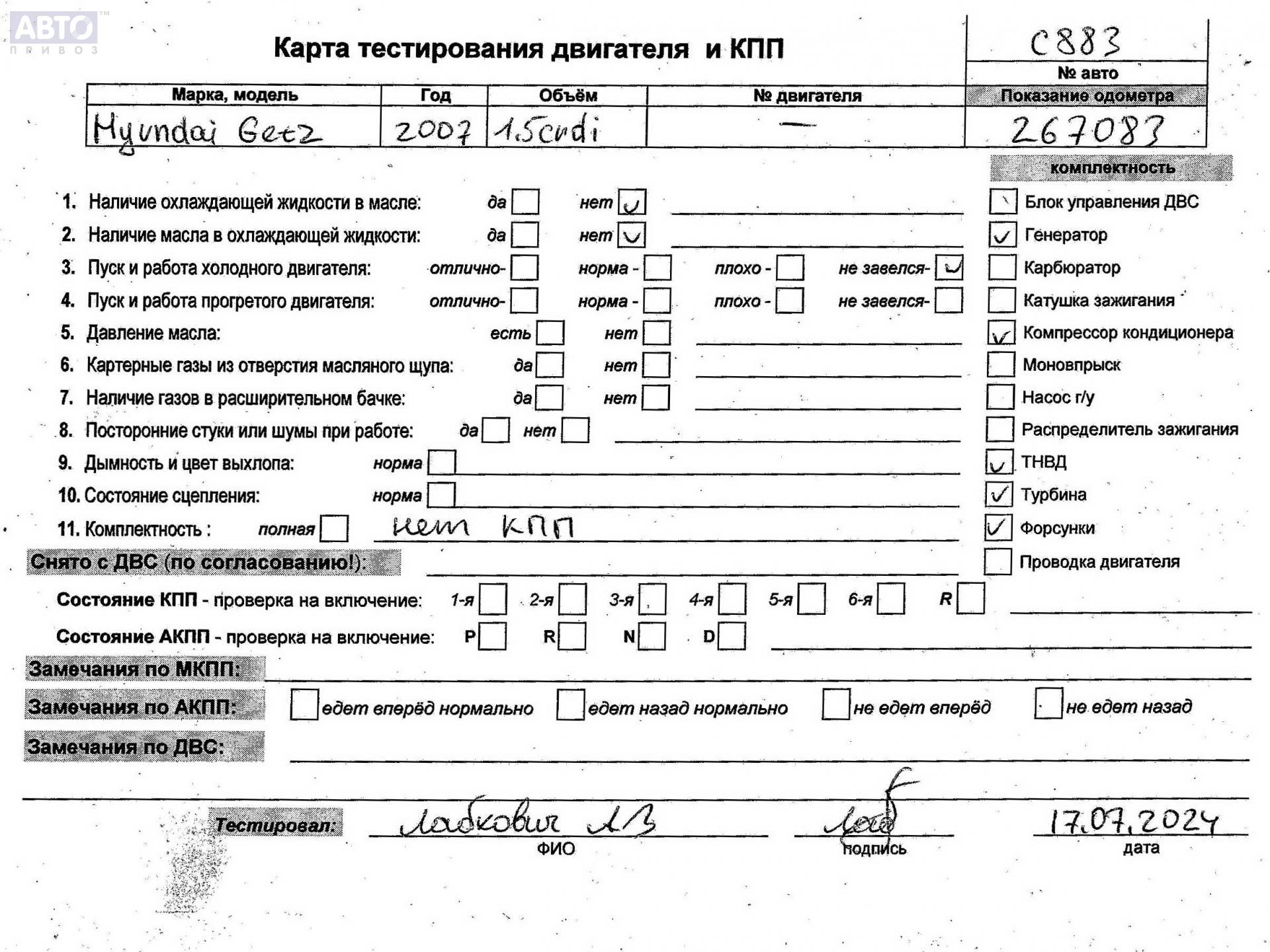 | Марка / Модель / Год: | Hyundai Getz 2007 |