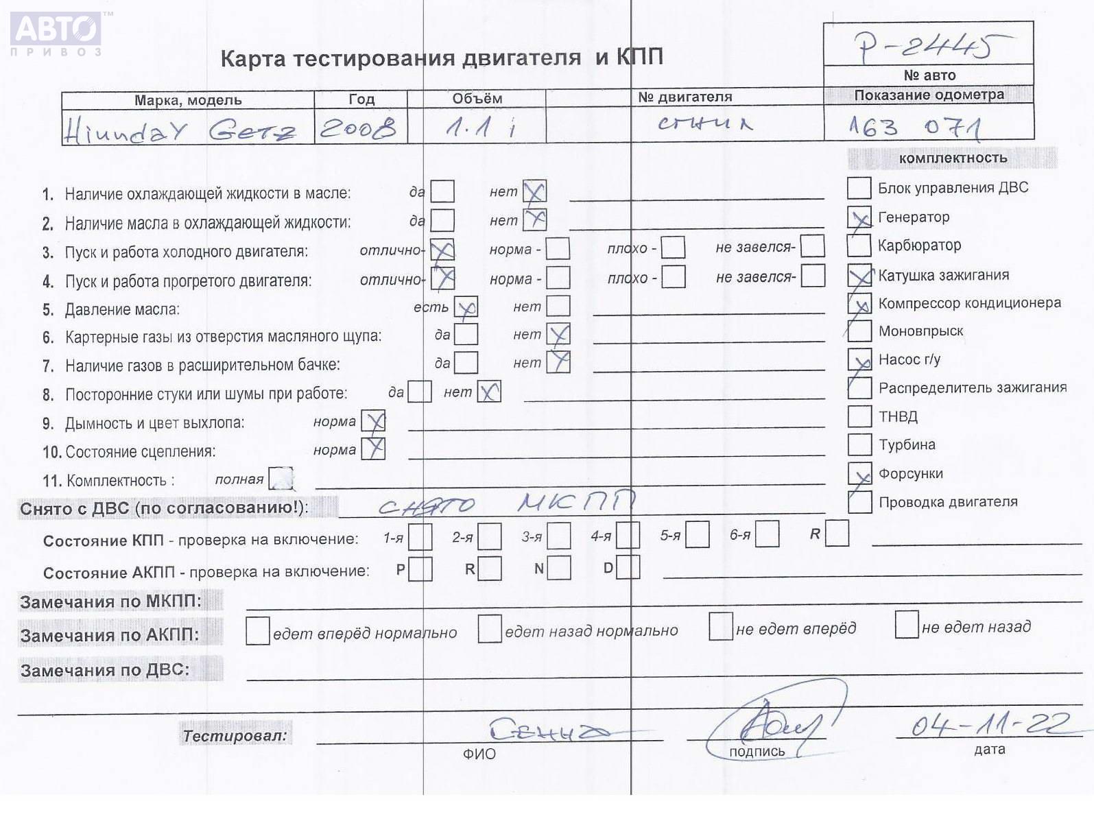 | Марка / Модель / Год: | Hyundai Getz 2008 |