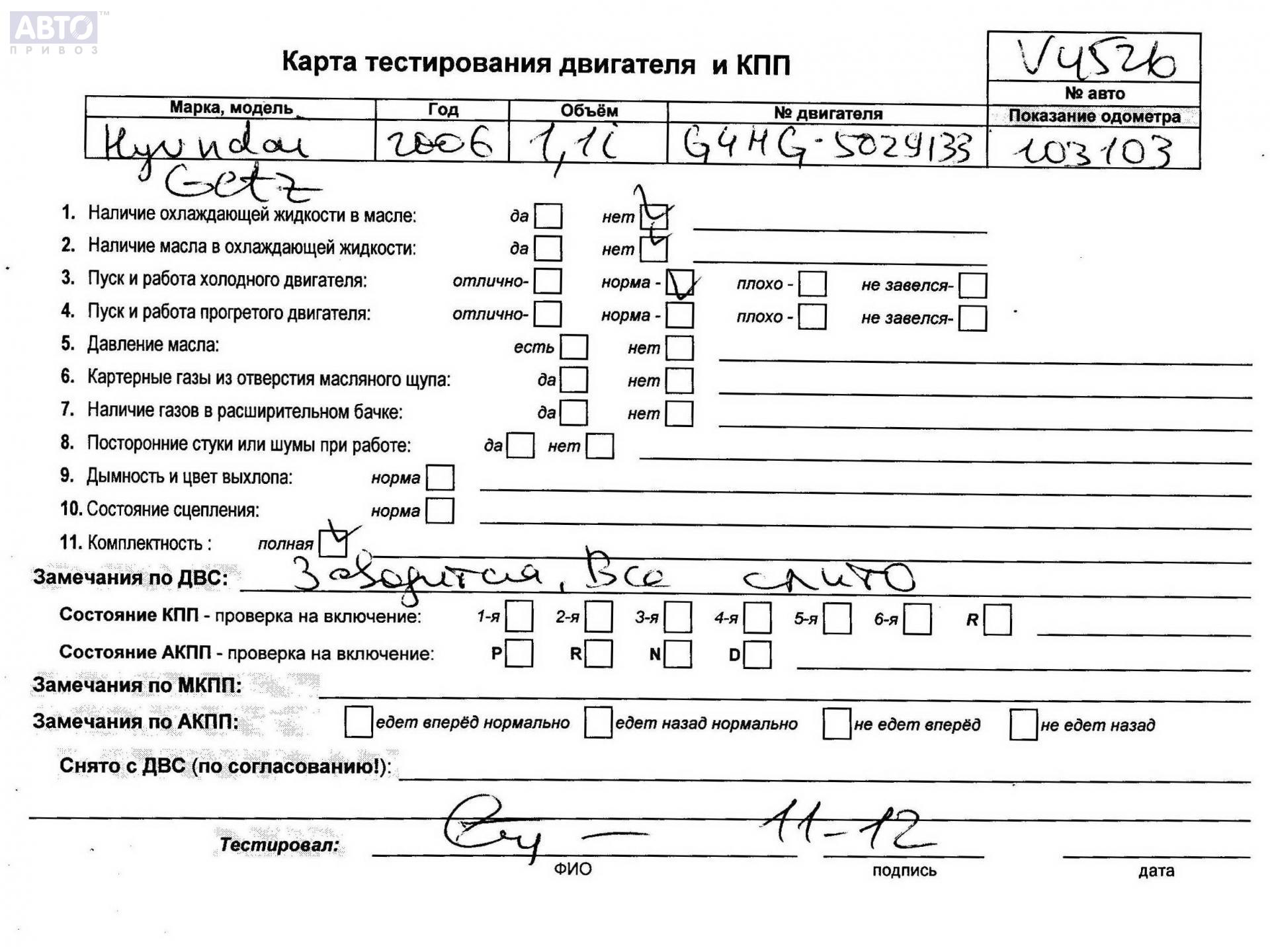 | Автомобиль / VIN: | V4526 KMHBT31GR6U124444 |