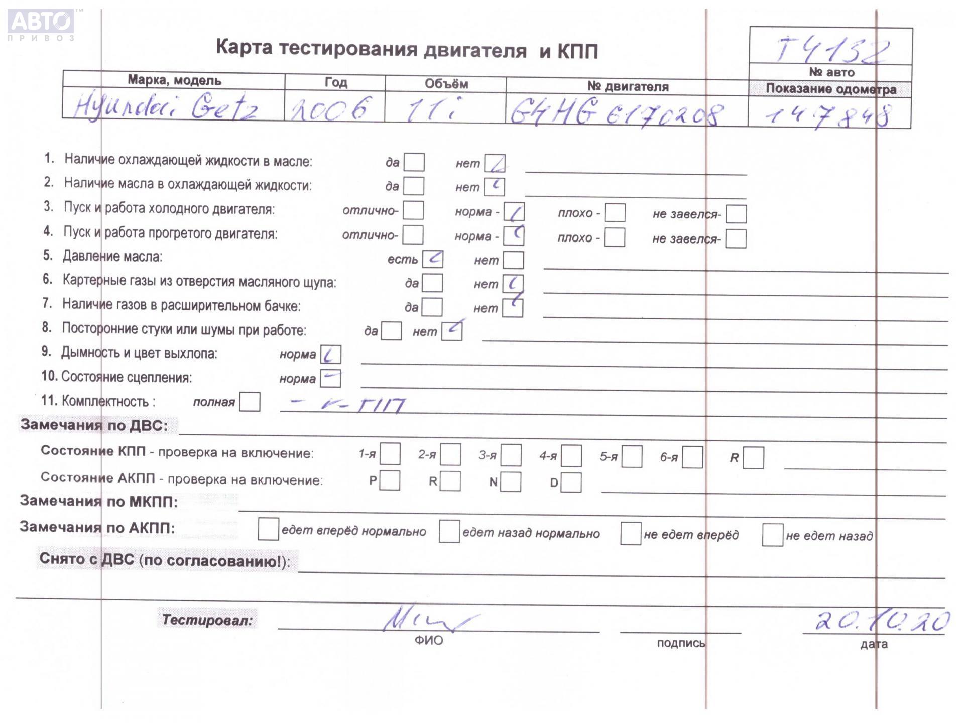| Марка / Модель / Год: | Hyundai Getz 2006 |