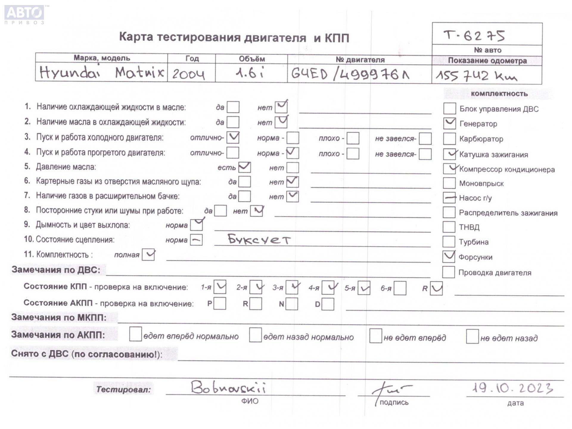 | Марка / Модель / Год: | Hyundai Matrix 2004 |