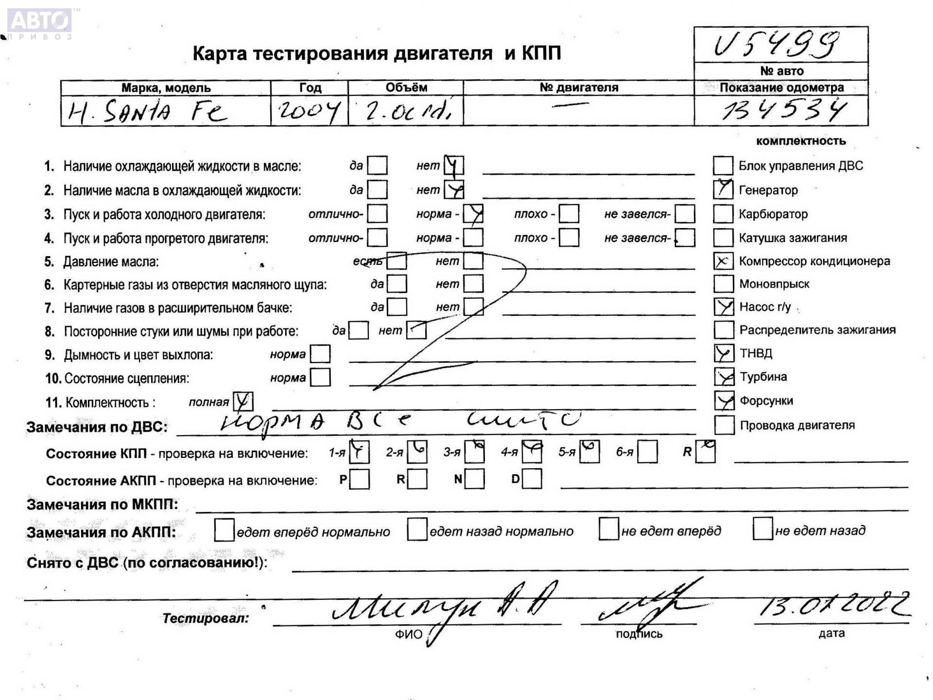 | Марка / Модель / Год: | Hyundai Santa Fe (2001-2006) 2004 |