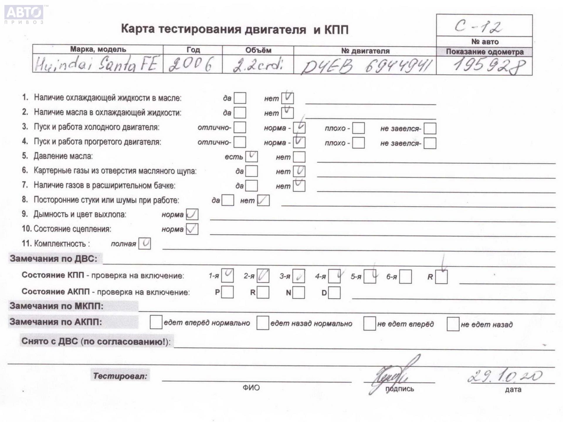 | Марка / Модель / Год: | Hyundai Santa Fe (2006-2012) 2006 |