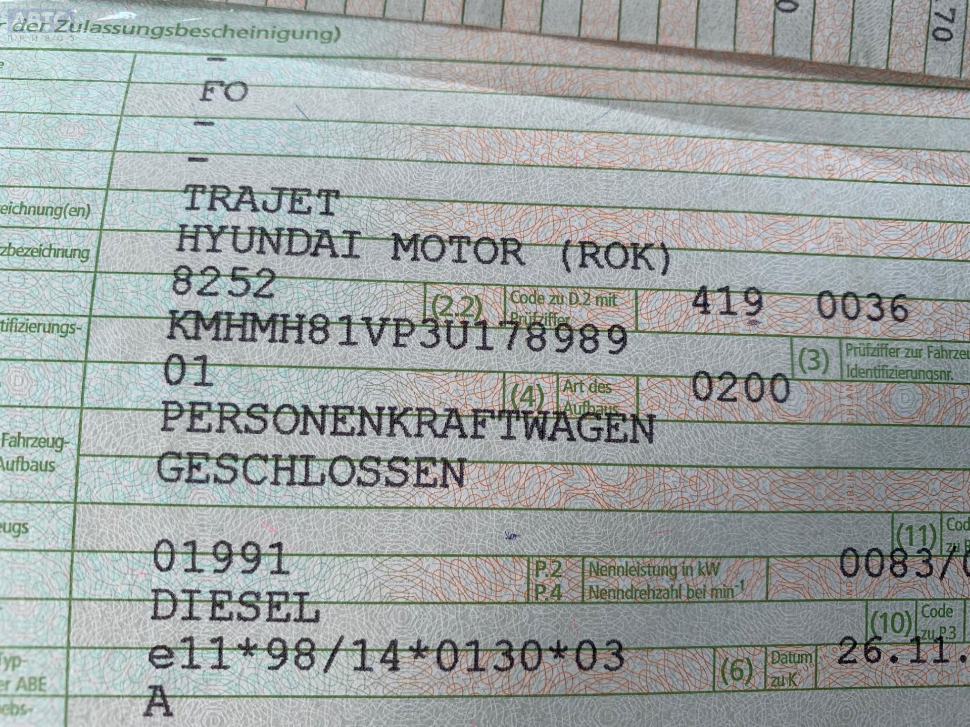 | Марка / Модель / Год: | Hyundai Trajet 2003 |