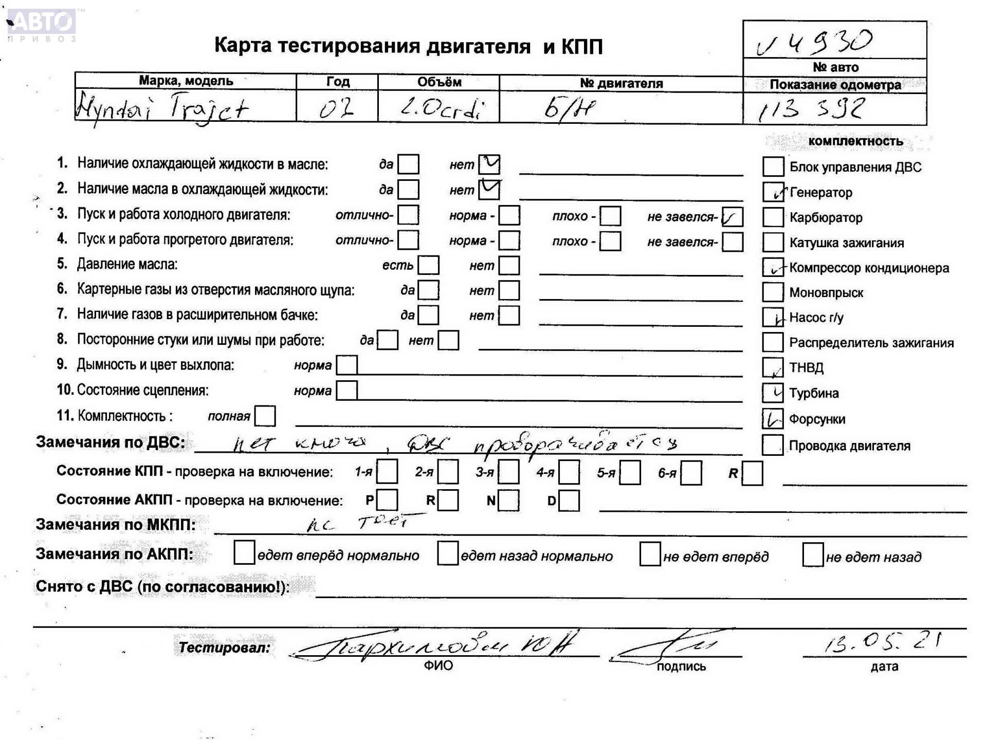| Марка / Модель / Год: | Hyundai Trajet 2003 |
