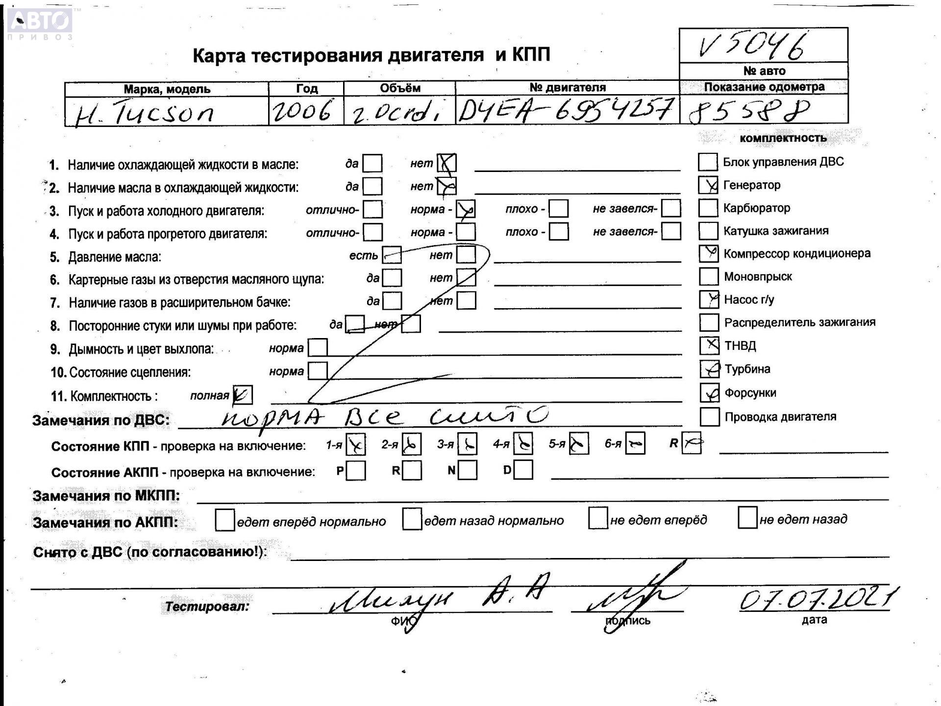| Марка / Модель / Год: | Hyundai Tucson (2004-2010) 2006 |