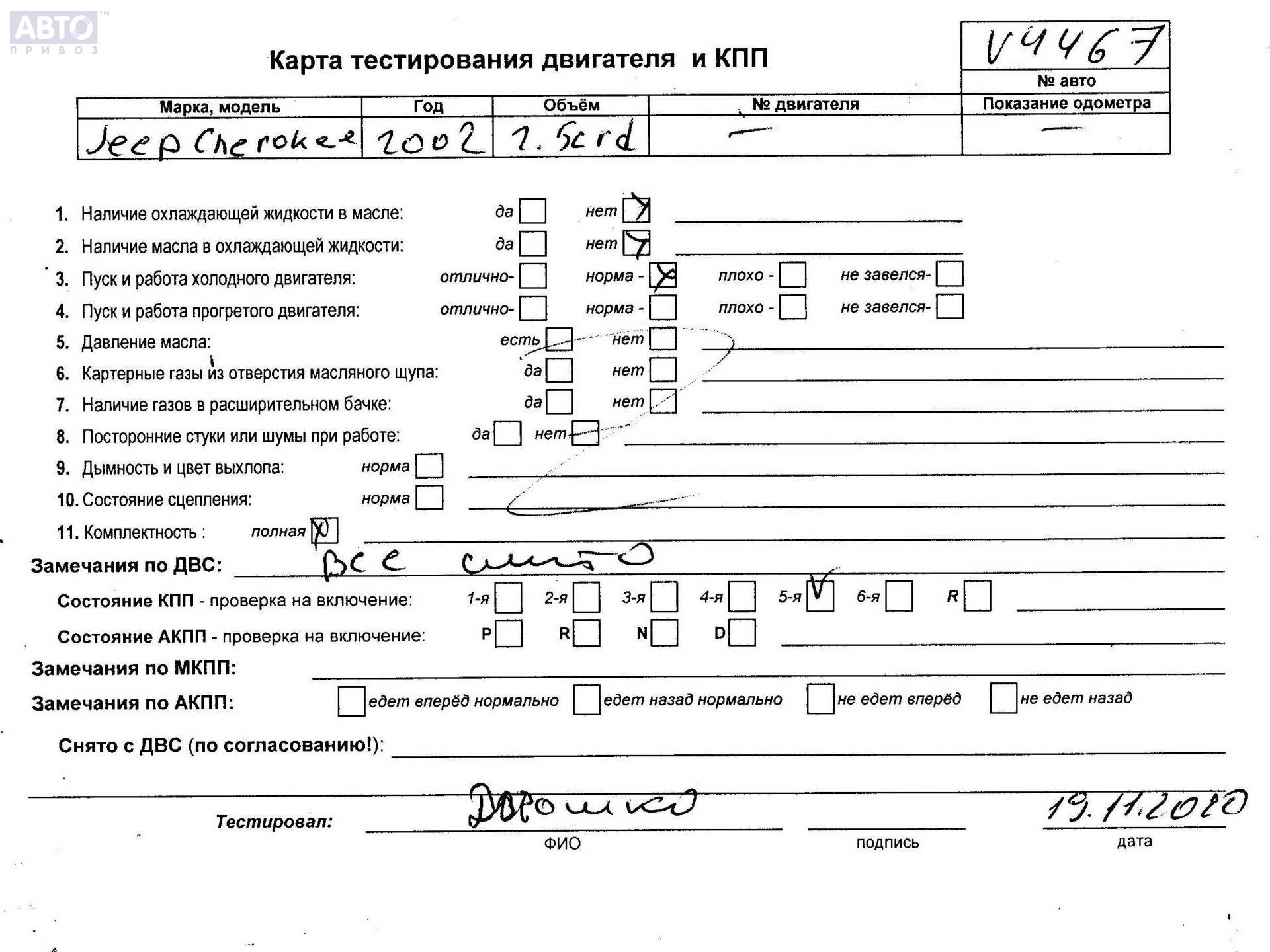 | Марка / Модель / Год: | Jeep Cherokee 2002 |