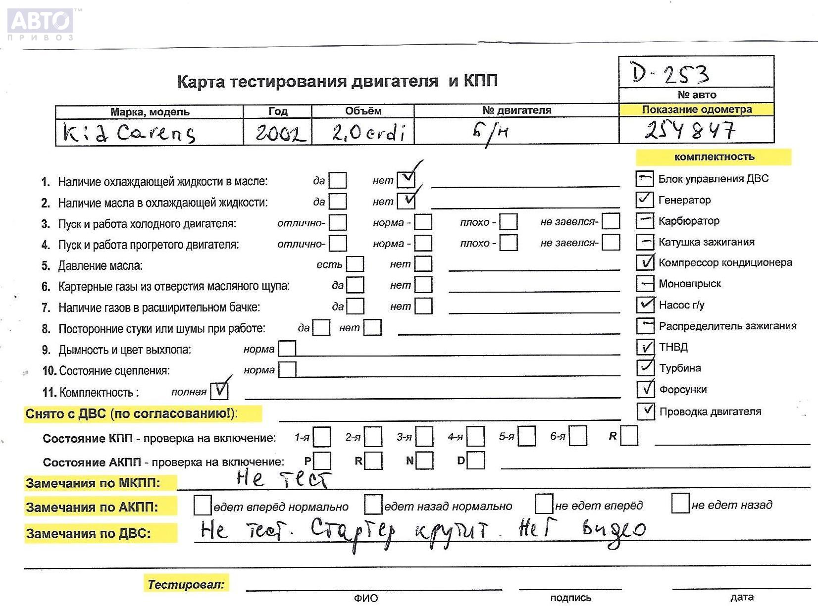 | Автомобиль / VIN: | D0253 KNEFC524335268399 |