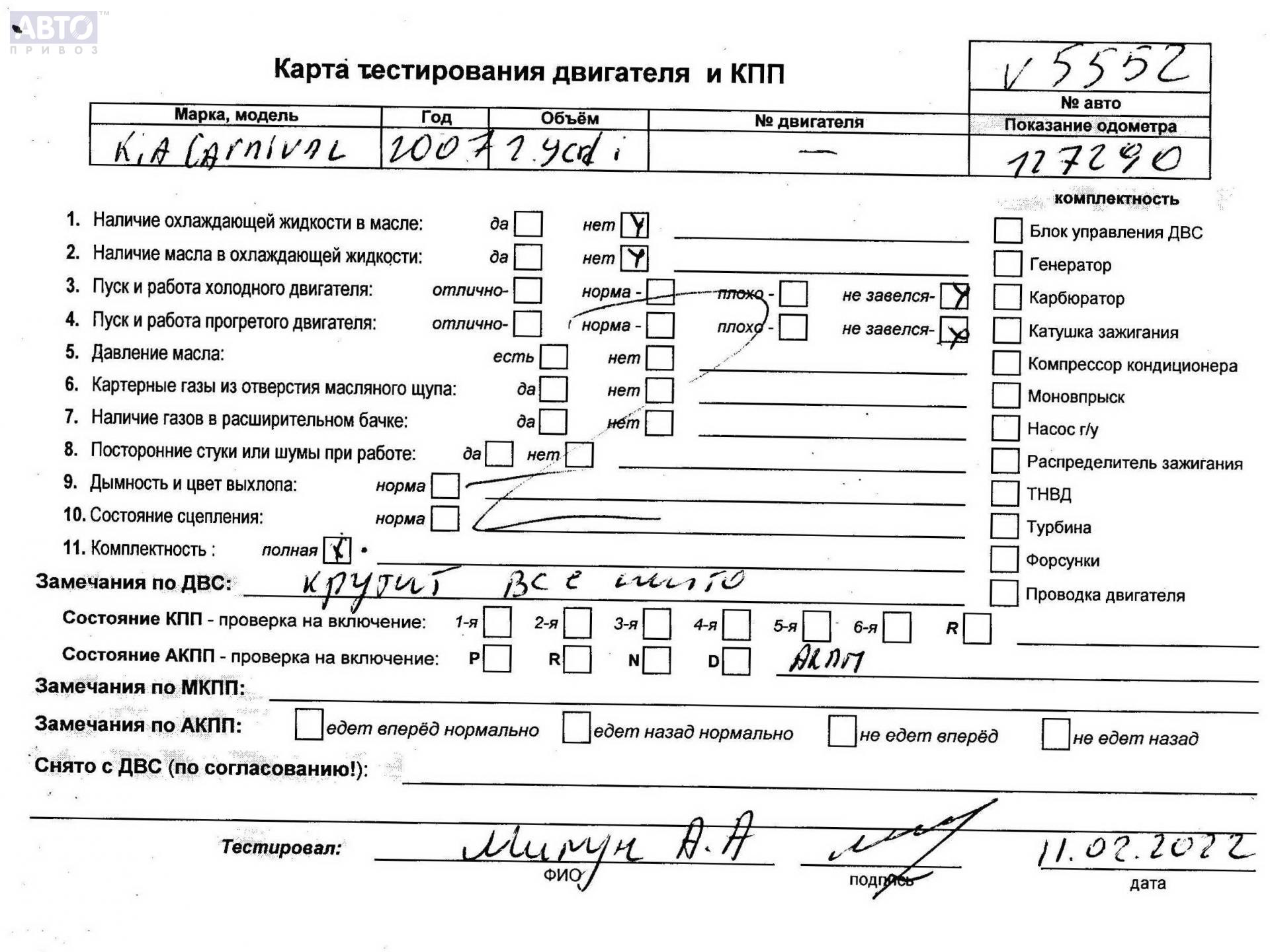 | Марка / Модель / Год: | Kia Carnival 2007 |