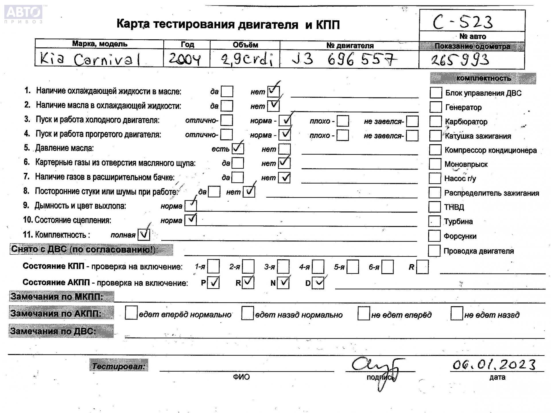 | Автомобиль / VIN: | C0523 KNEUP751356717772 |