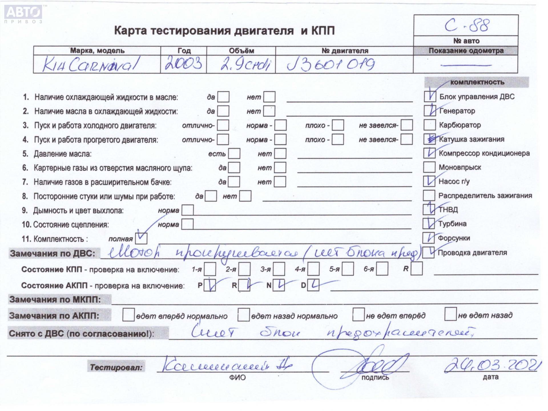 | Марка / Модель / Год: | Kia Carnival 2003 |