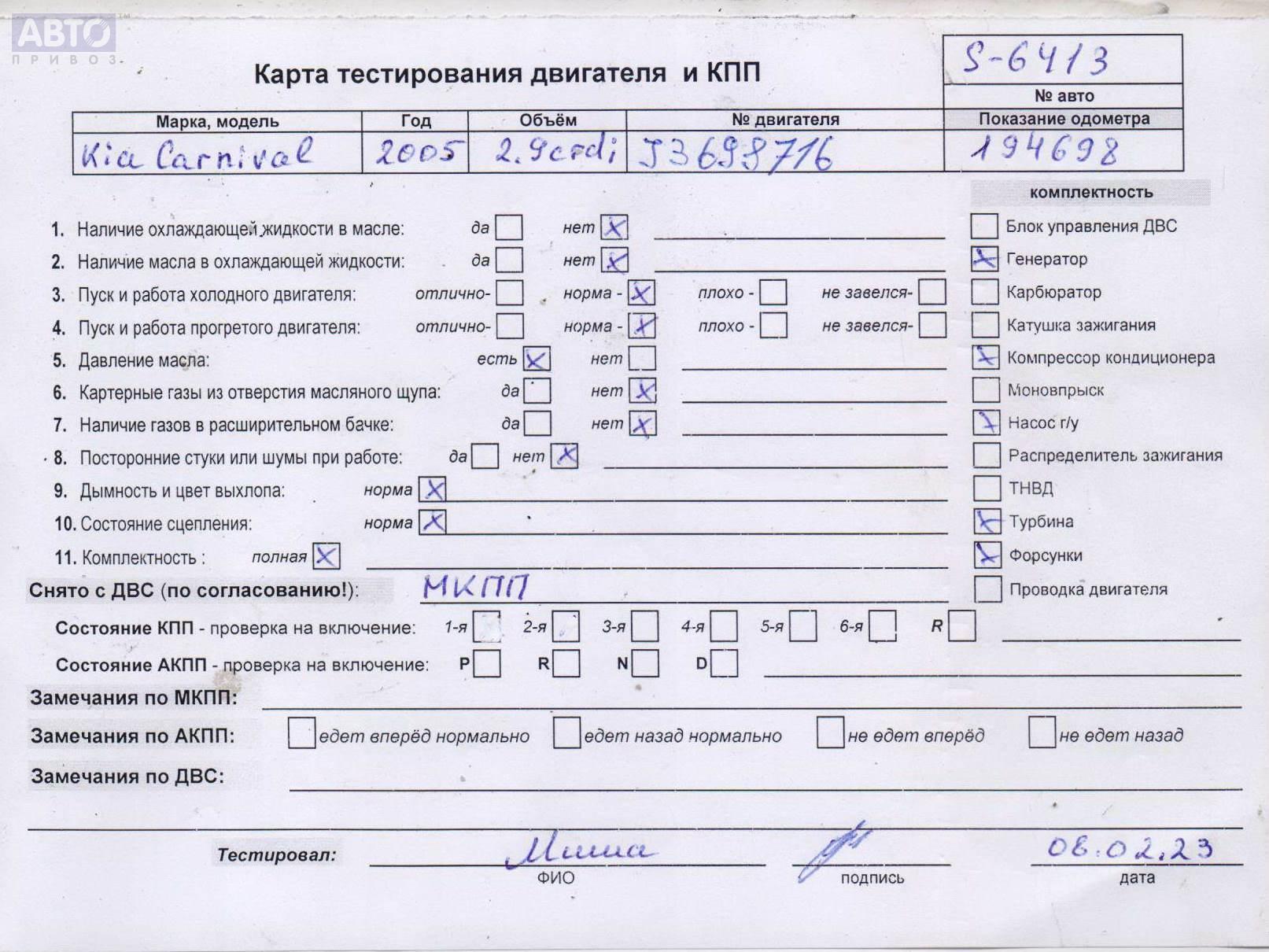 | Марка / Модель / Год: | Kia Carnival 2005 |