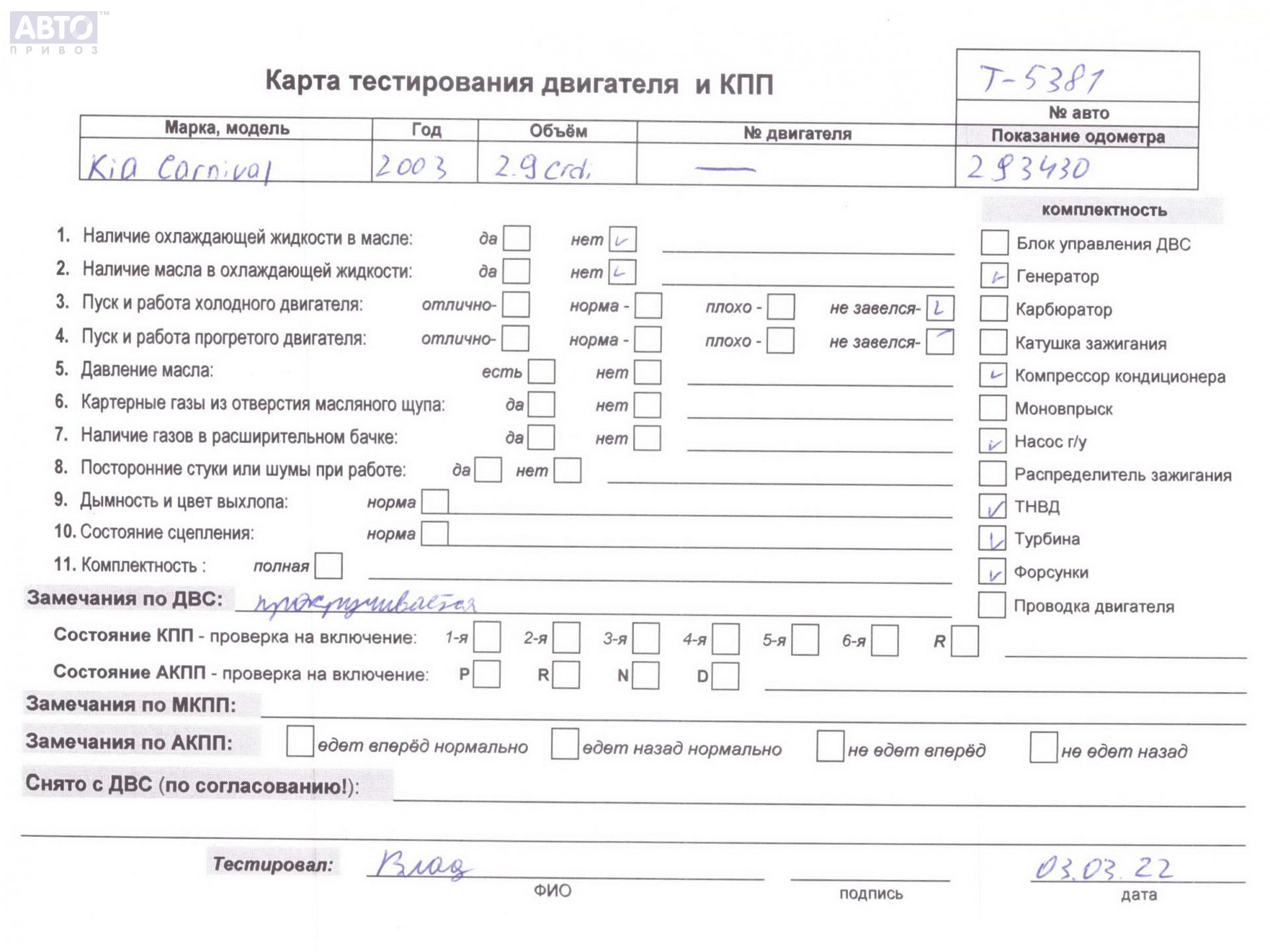 | Марка / Модель / Год: | Kia Carnival 2004 |