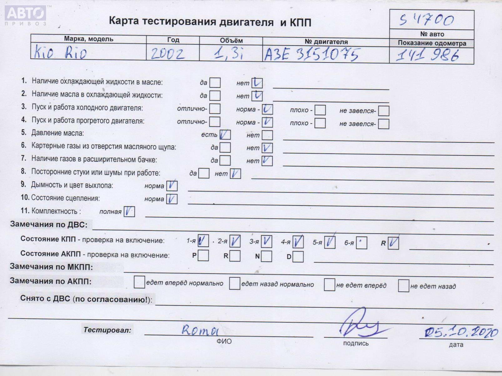 | Марка / Модель / Год: | Kia Rio (2000-2005) 2002 |