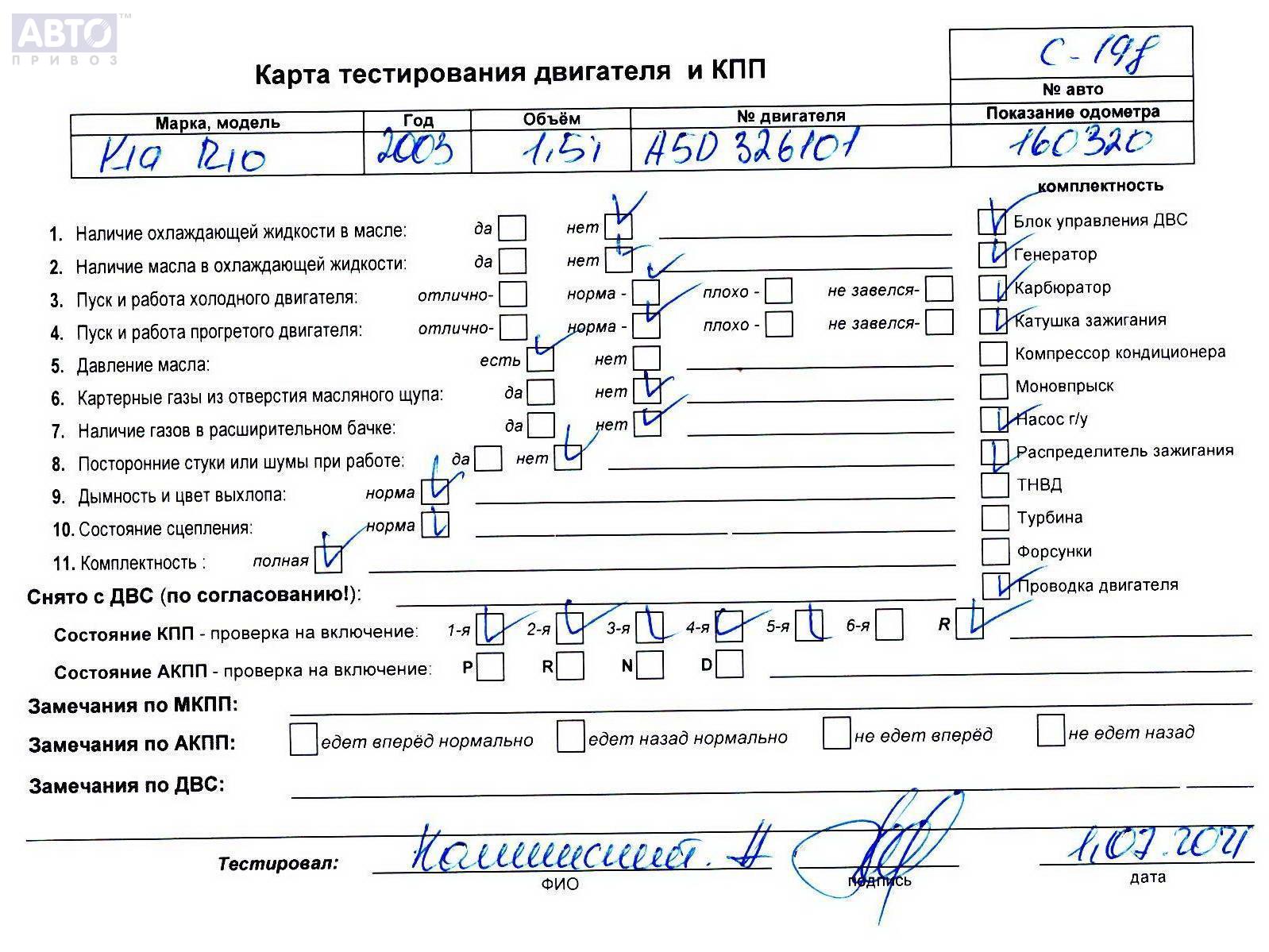 | Марка / Модель / Год: | Kia Rio (2000-2005) 2003 |