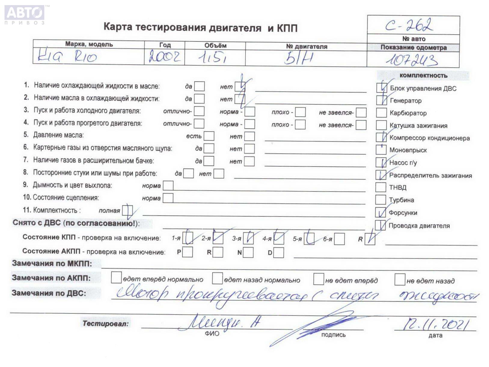 | Марка / Модель / Год: | Kia Rio (2000-2005) 2002 |