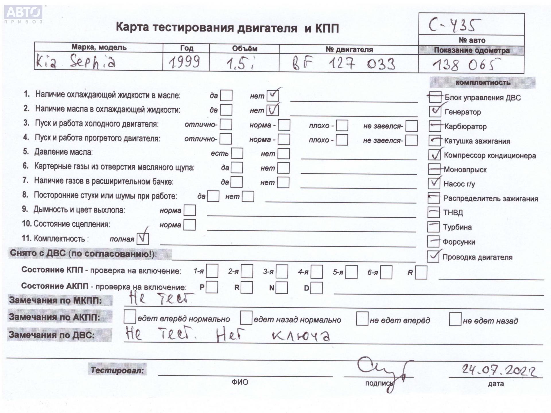 | Автомобиль / VIN: | C0435 KNEFB2222Y5613132 |