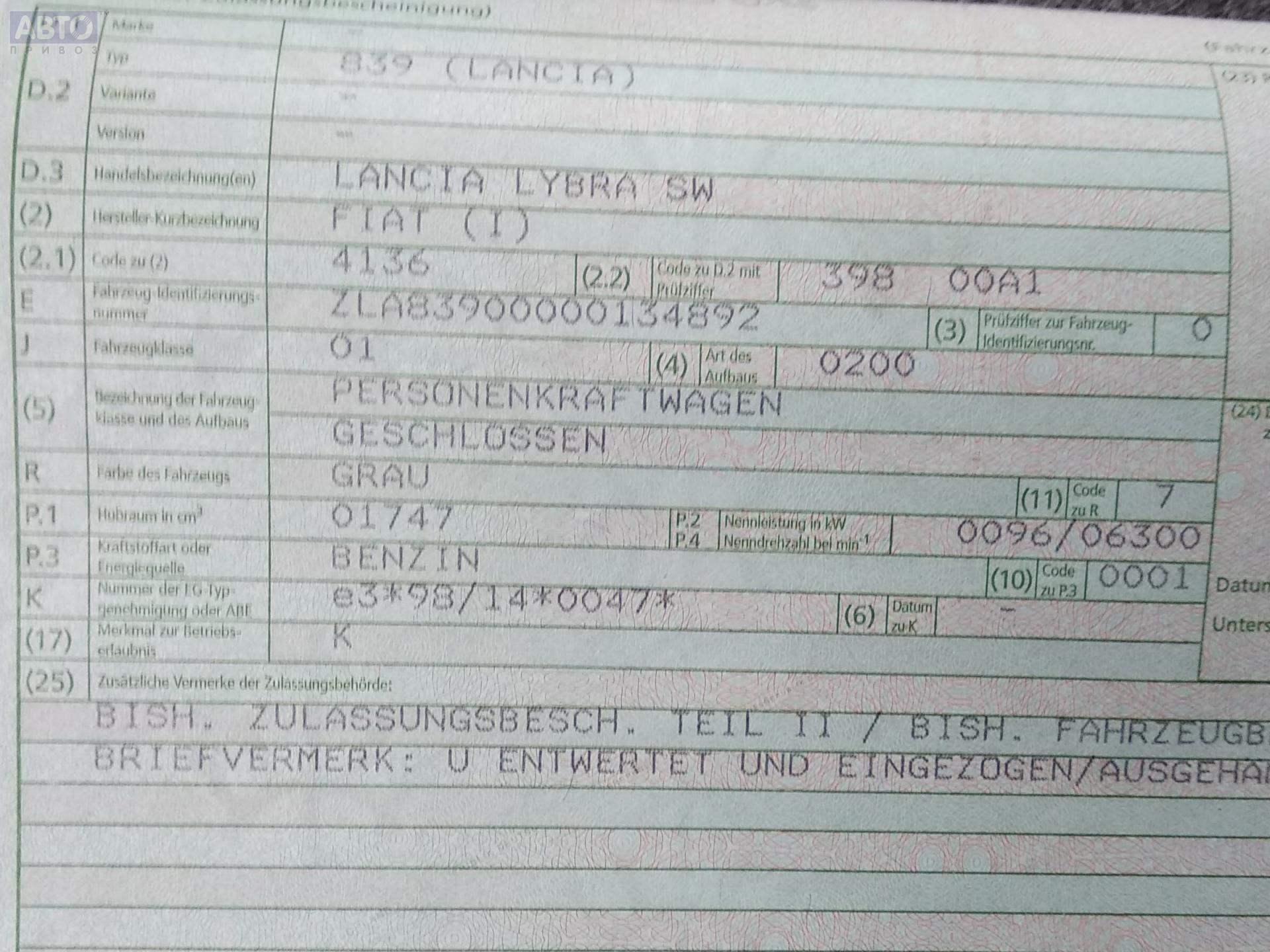 | Марка / Модель / Год: | Lancia Lybra 2002 |