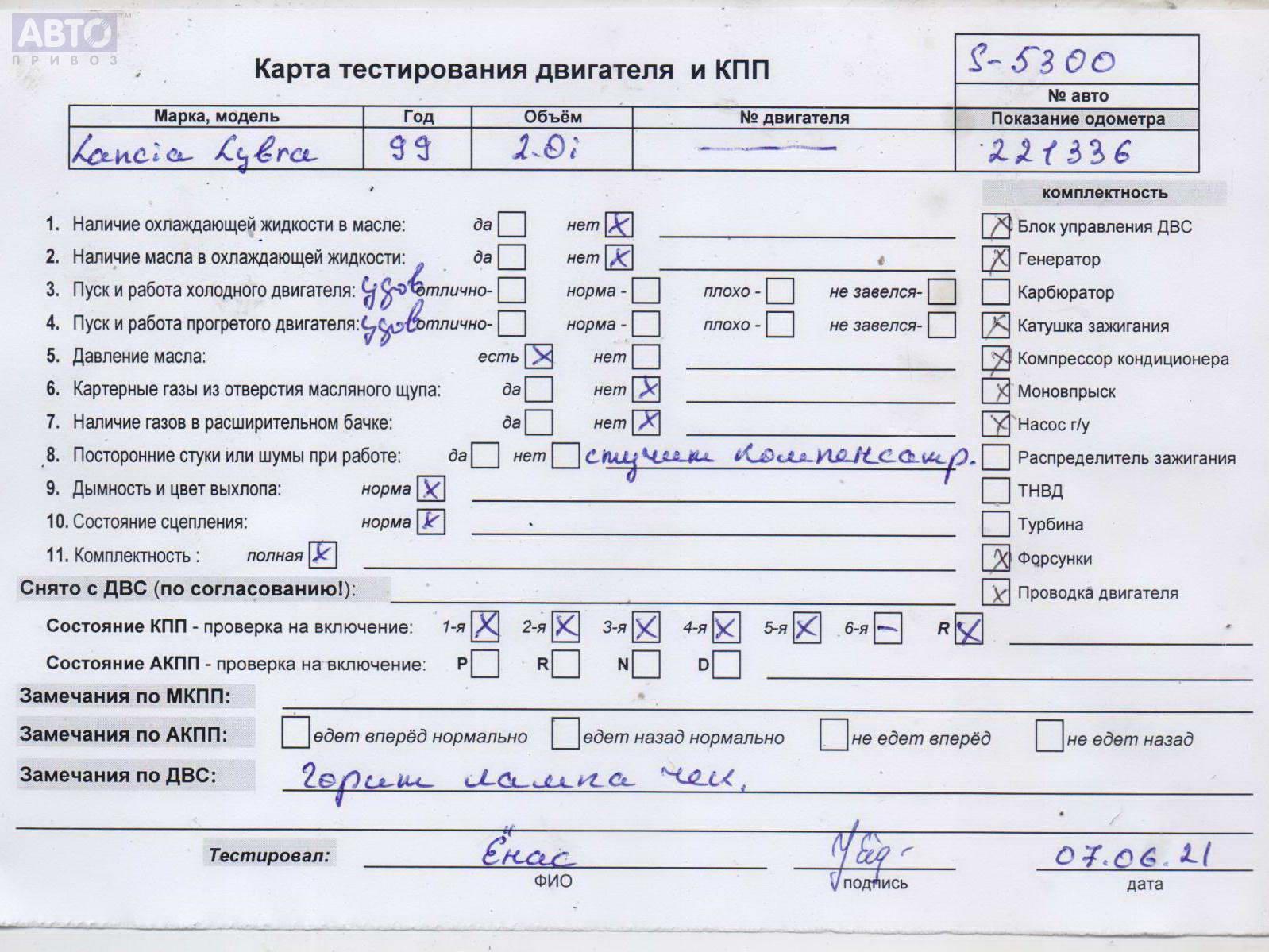 | Марка / Модель / Год: | Lancia Lybra 1999 |