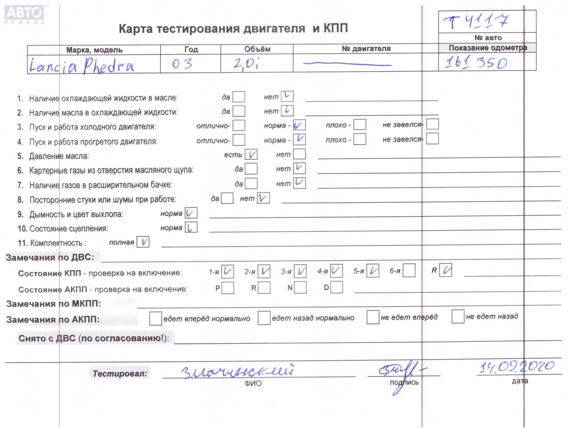 | Марка / Модель / Год: | Lancia Phedra 2003 |