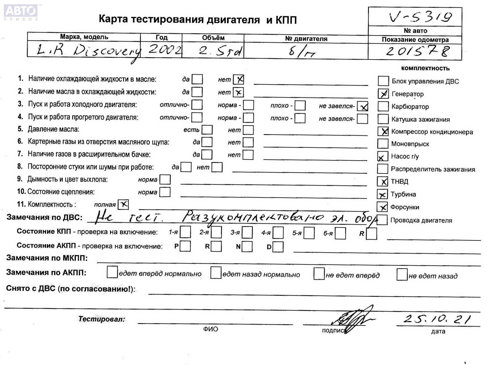 | Марка / Модель / Год: | Land Rover Discovery 2000 |
