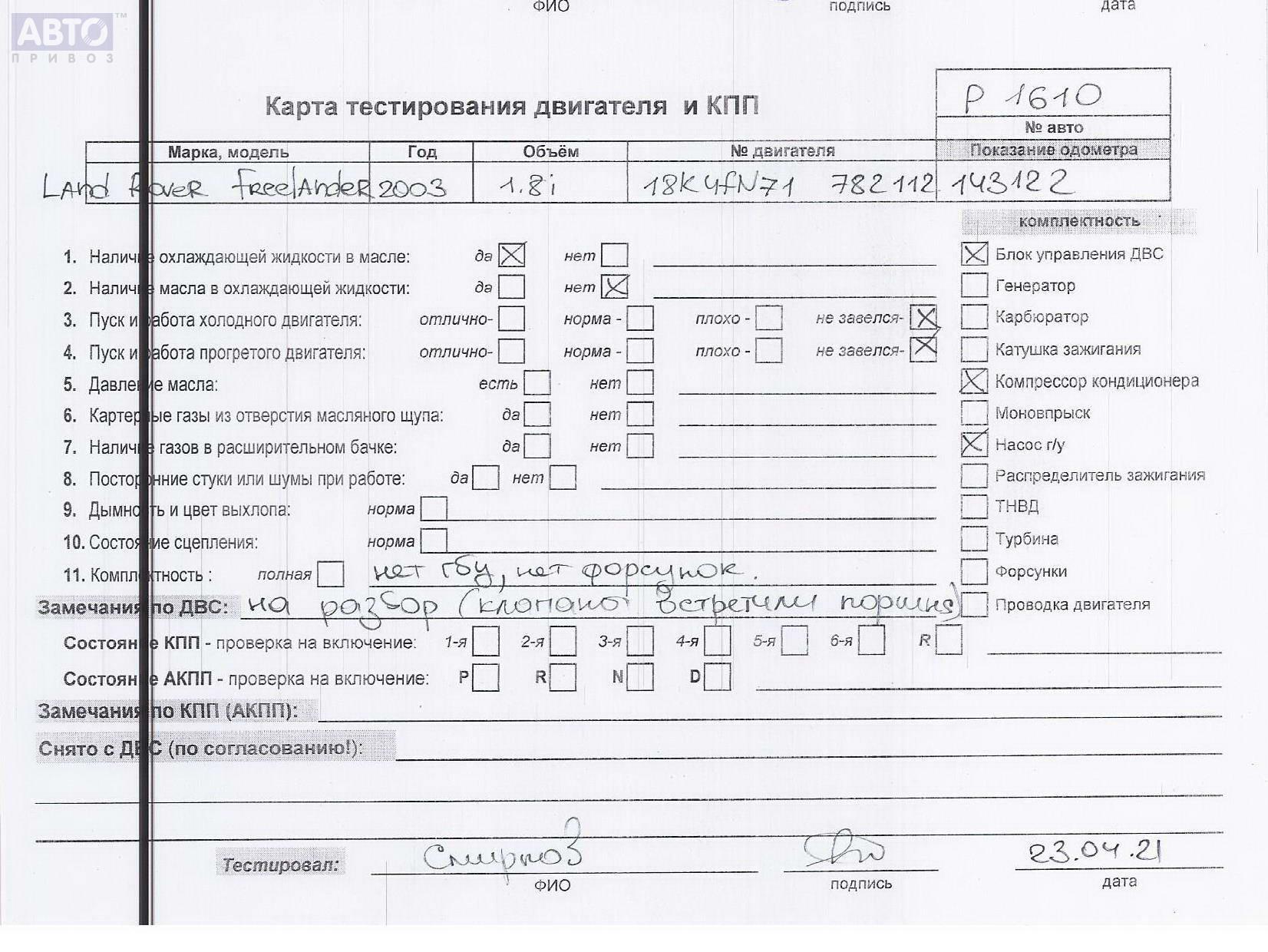| Марка / Модель / Год: | Land Rover Freelander (1997-2006) 2003 |