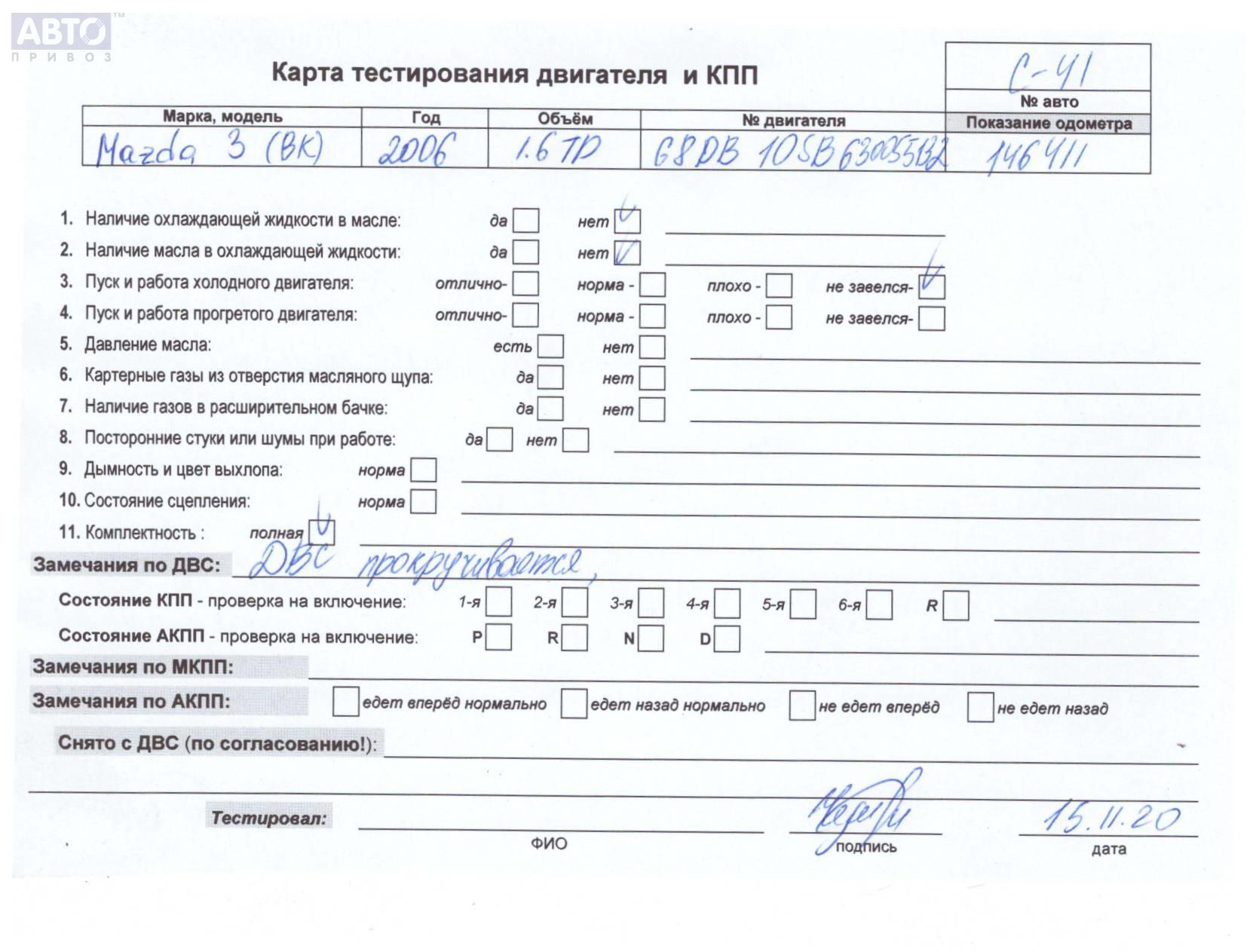 | Автомобиль / VIN: | C0041 JMZBK14Y271533485 |