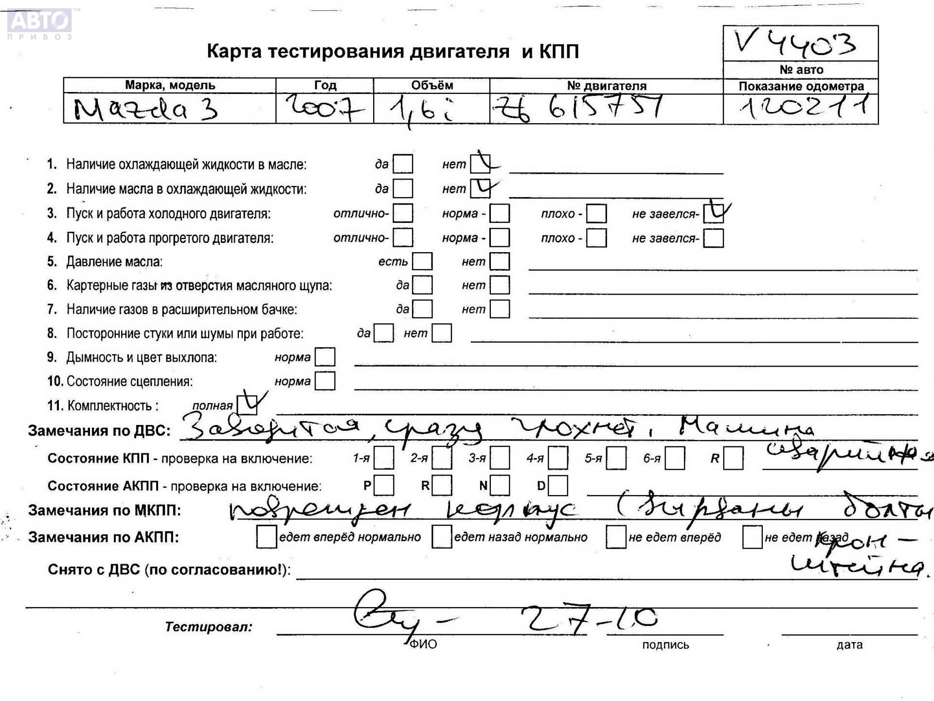 | Марка / Модель / Год: | Mazda 3 (2003-2008) BK 2007 |