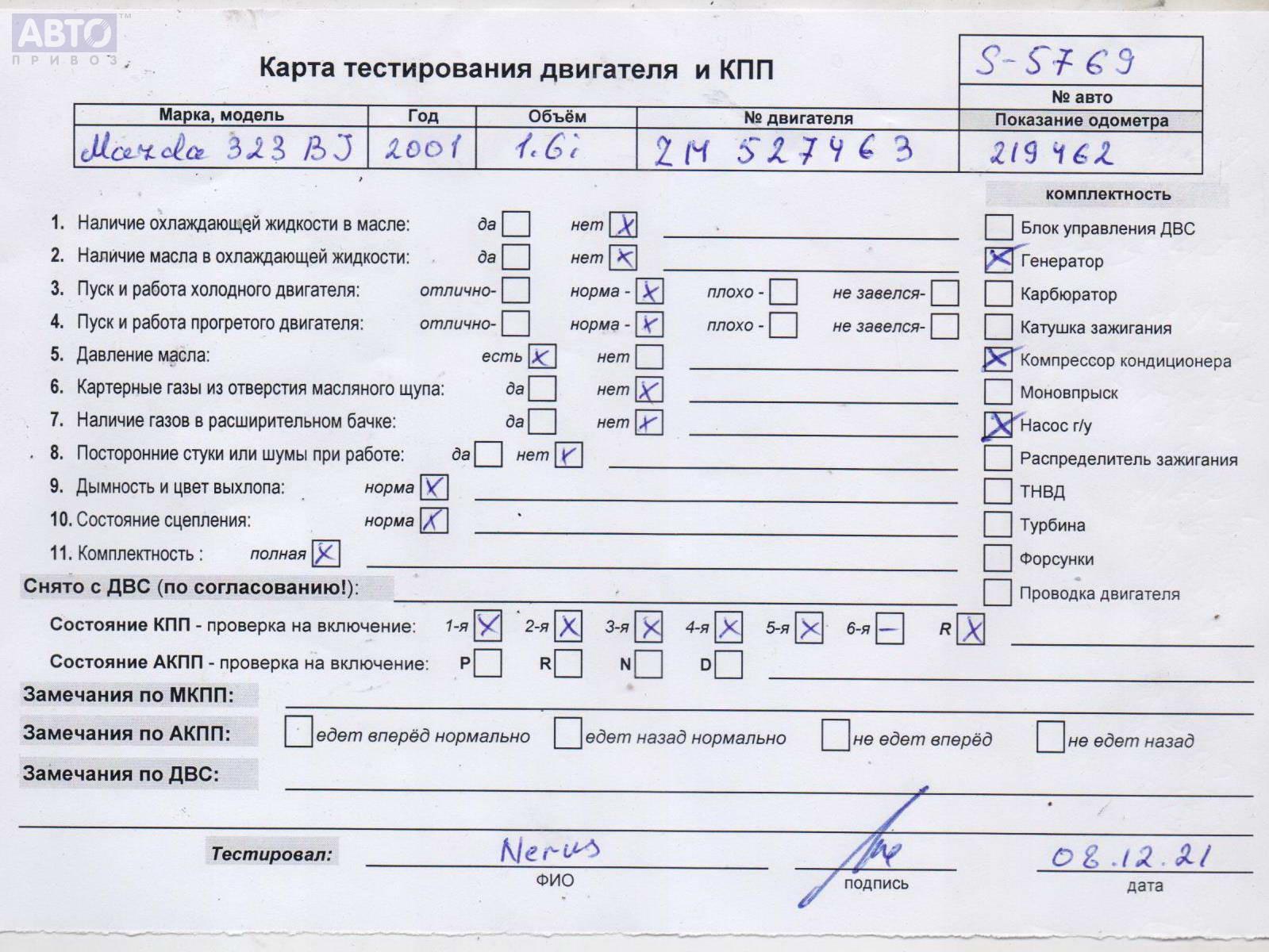 | Марка / Модель / Год: | Mazda 323 (1998-2003) BJ 2001 |