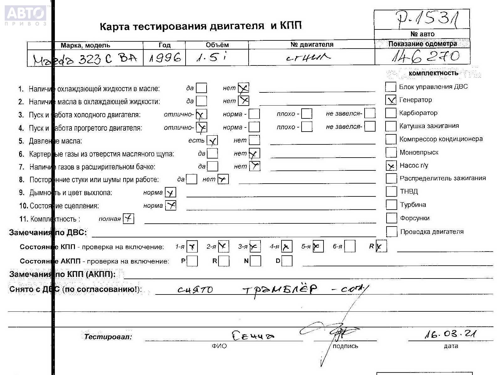 | Марка / Модель / Год: | Mazda 323C (1994-1998) BA 1996 |
