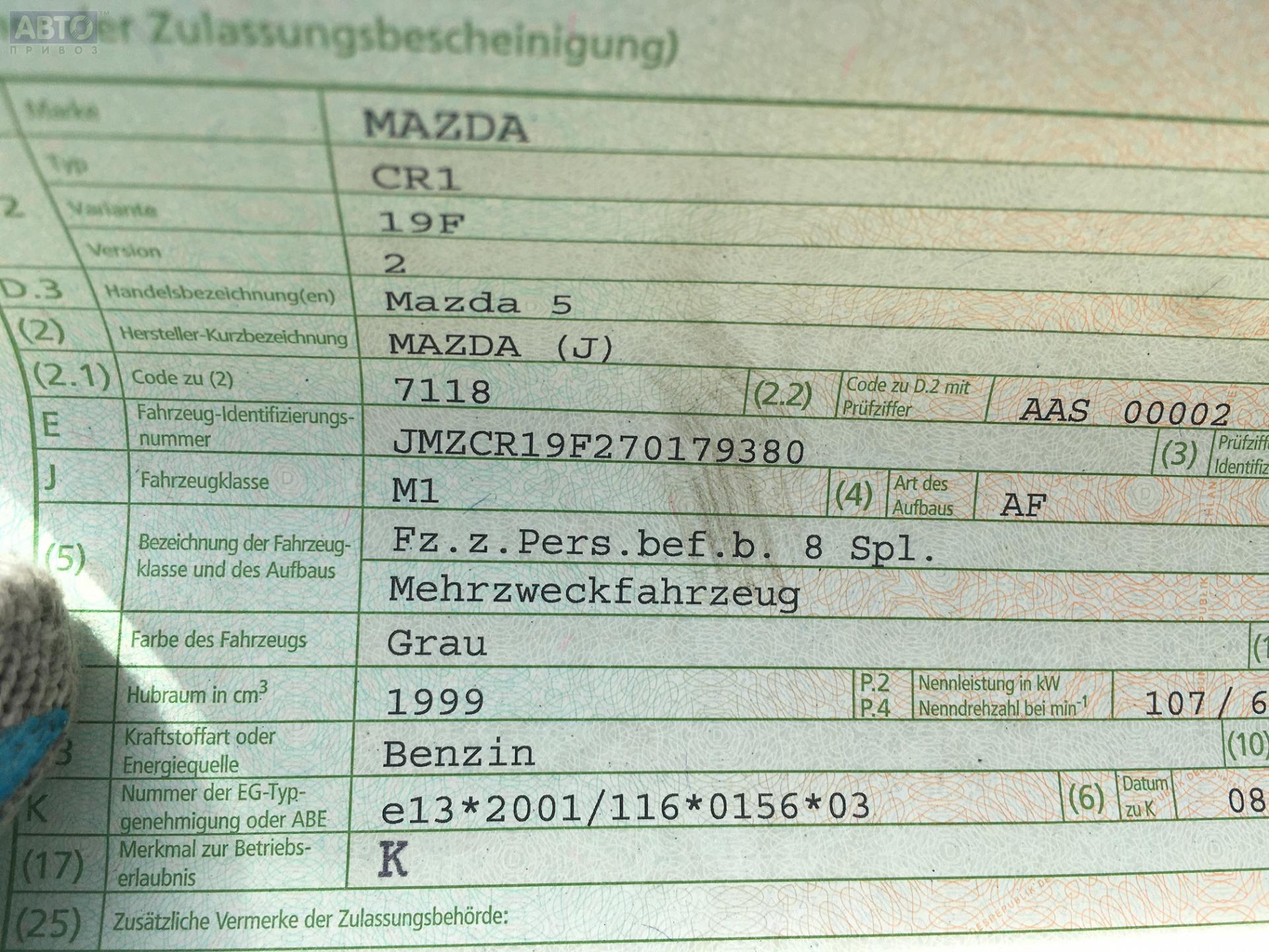 | Марка / Модель / Год: | Mazda 5 2006 |