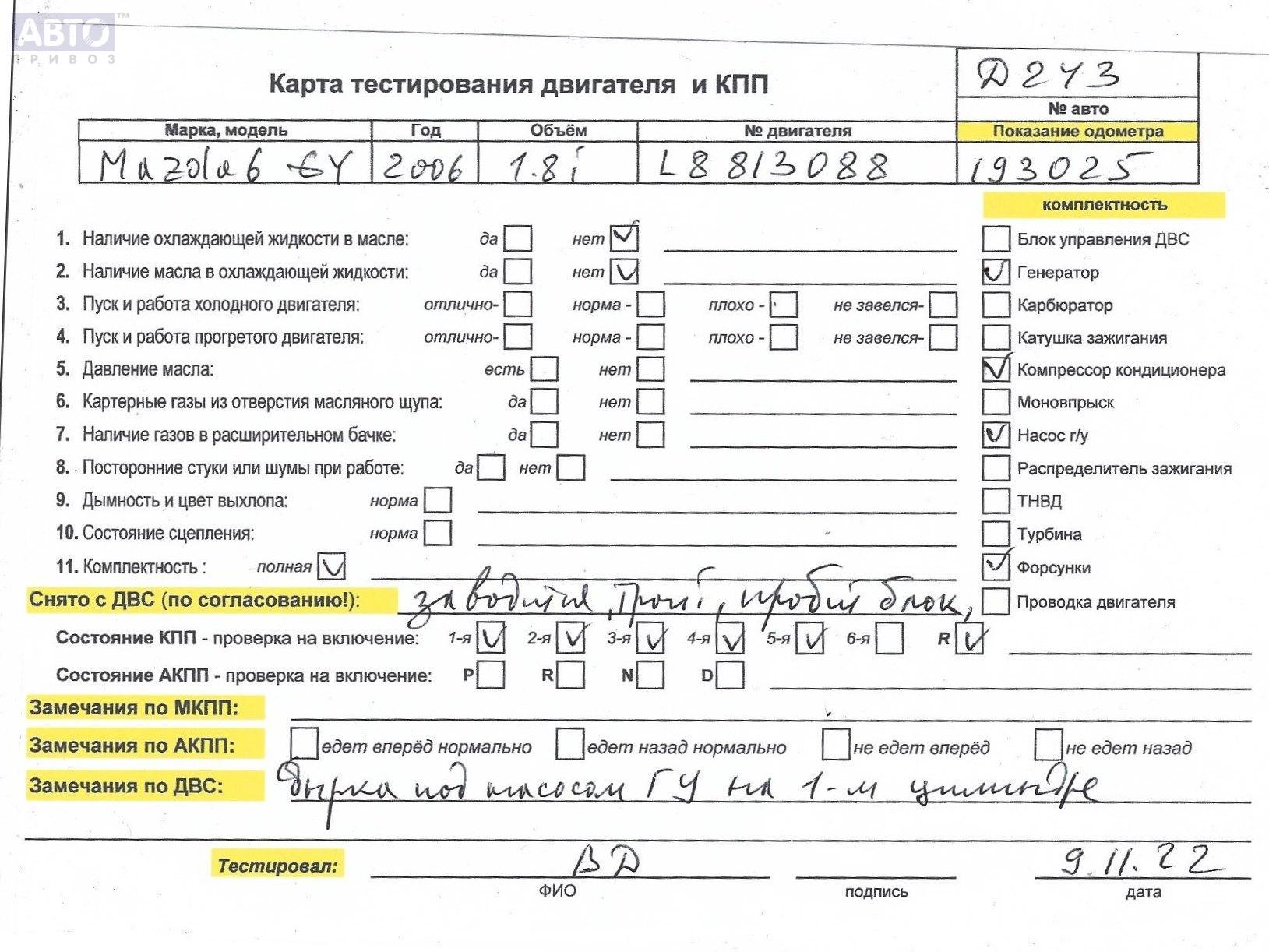 | Автомобиль / VIN: | D0243 JMZGY198271457582 |