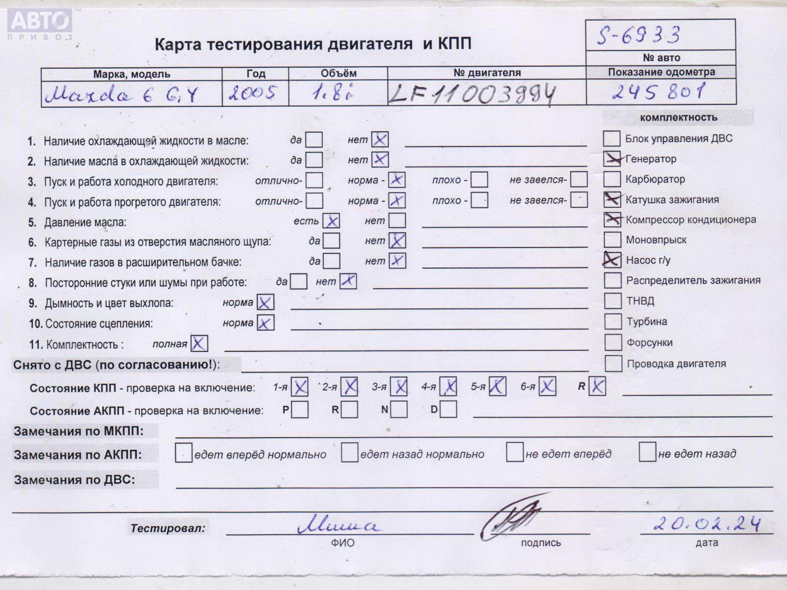 | Марка / Модель / Год: | Mazda 6 (2002-2007) GG/GY 2005 |