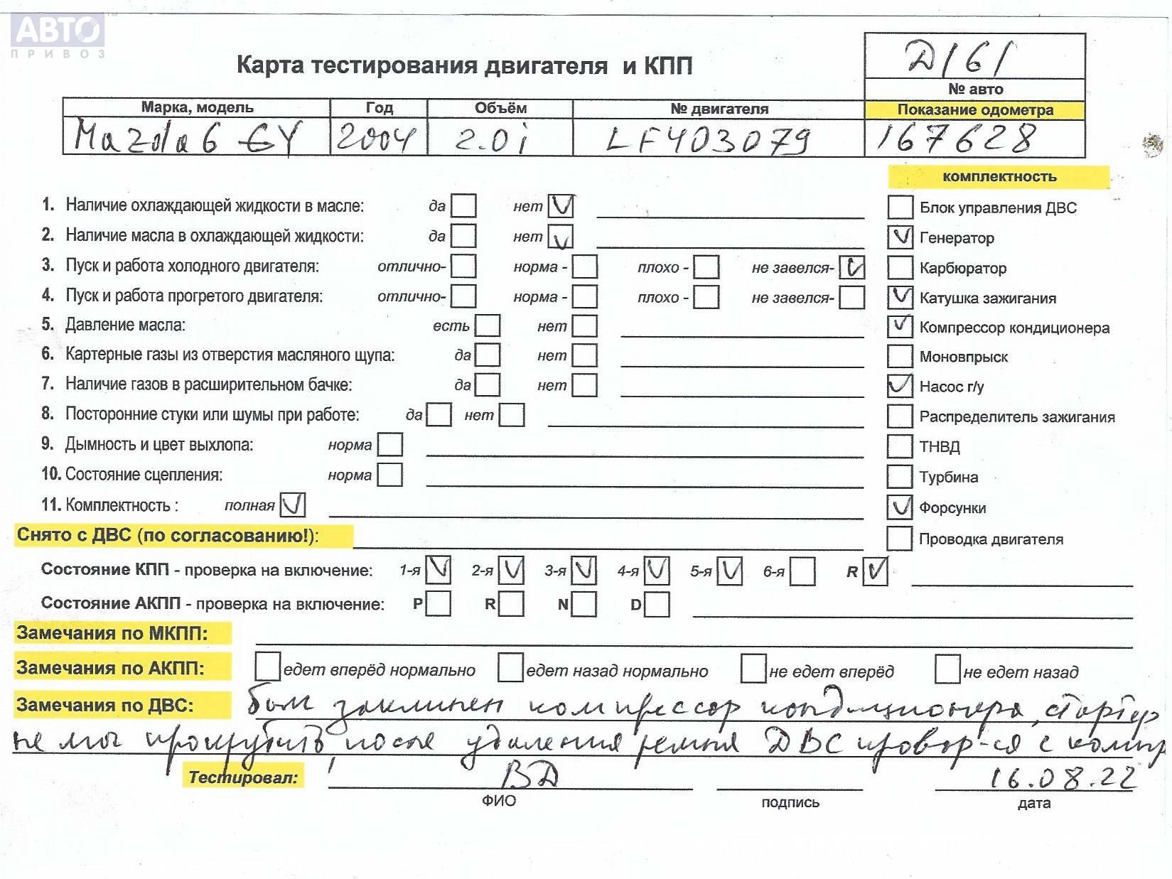| Марка / Модель / Год: | Mazda 6 (2002-2007) GG/GY 2004 |