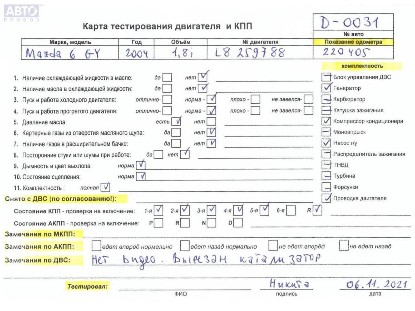 | Марка / Модель / Год: | Mazda 6 (2002-2007) GG/GY 2004 |