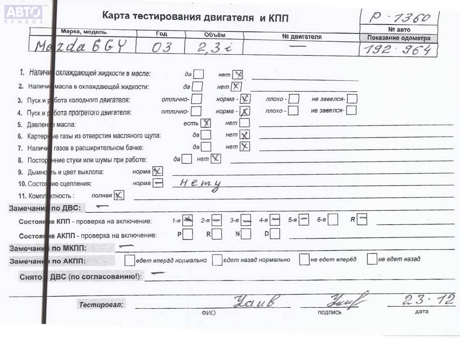 | Марка / Модель / Год: | Mazda 6 (2002-2007) GG/GY 2003 |