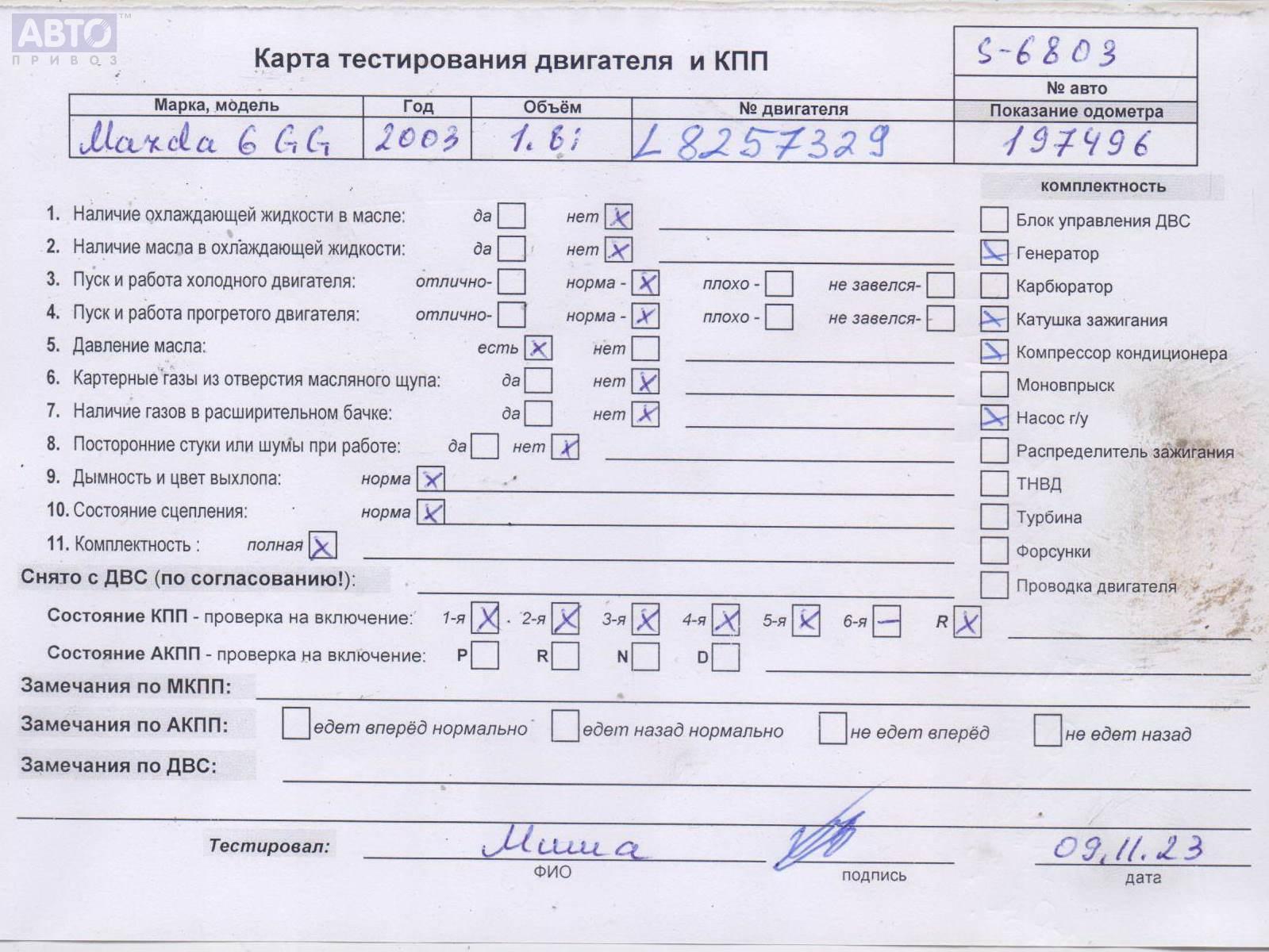 | Марка / Модель / Год: | Mazda 6 (2002-2007) GG/GY 2004 |