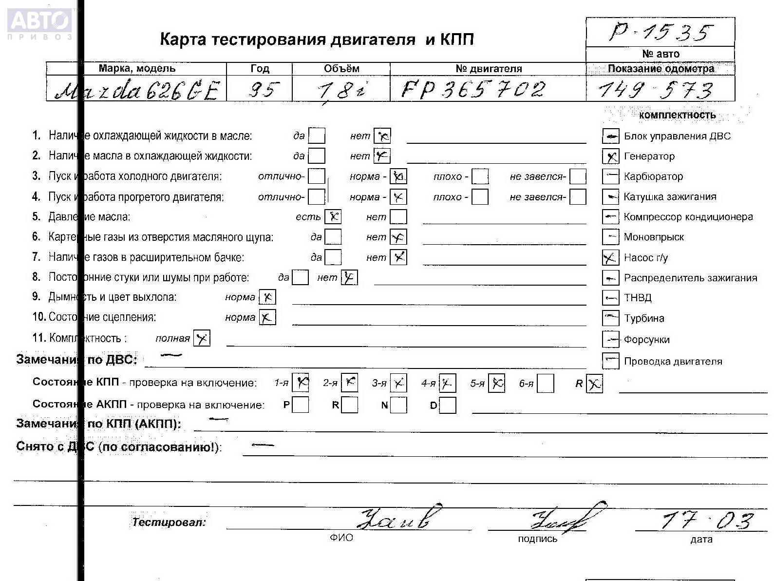 | Марка / Модель / Год: | Mazda 626 (1992-1997) GE 1995 |