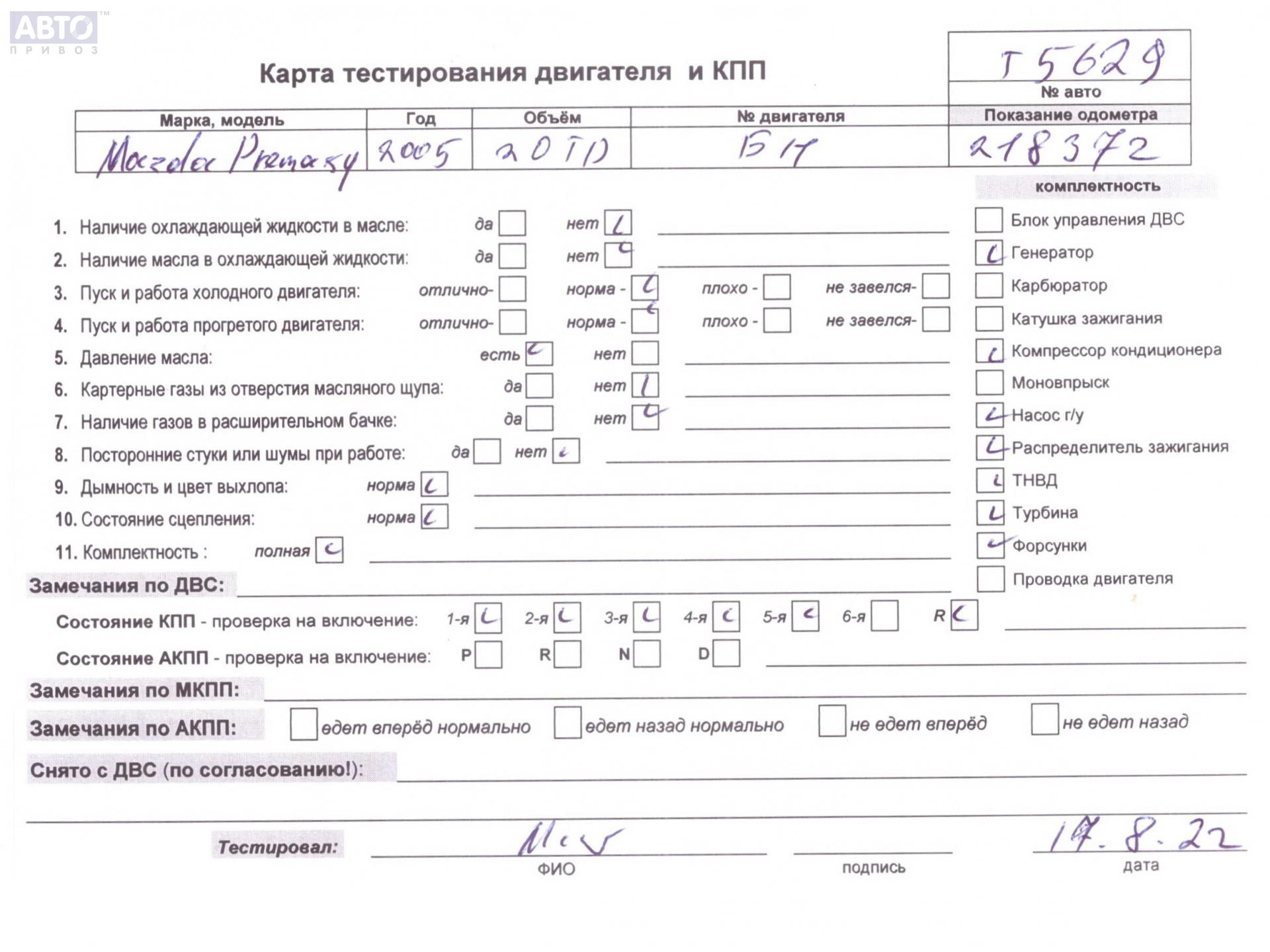 | Марка / Модель / Год: | Mazda Premacy 2004 |