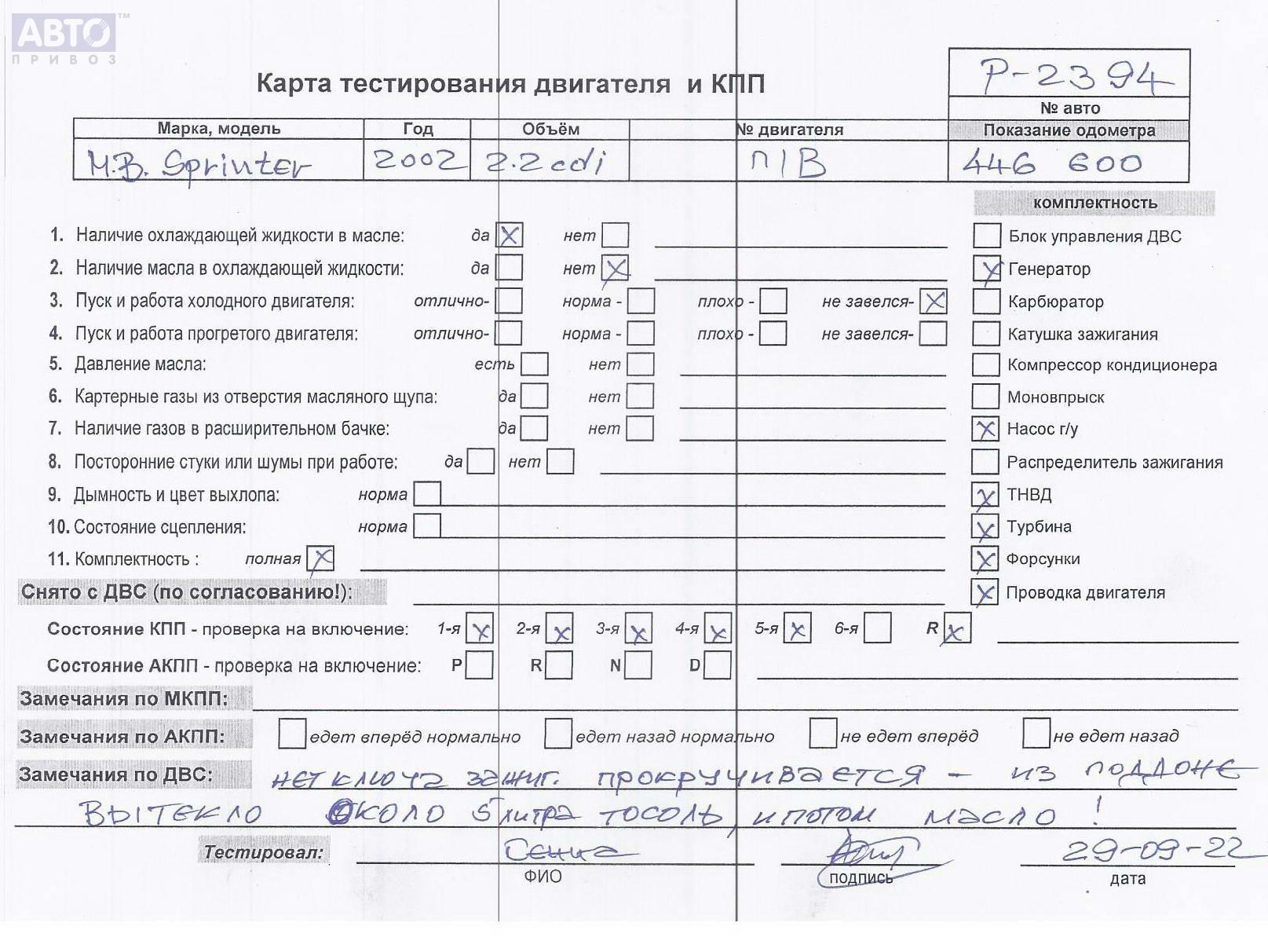 | Автомобиль / VIN: | P2394 WDB9036221R436215 |