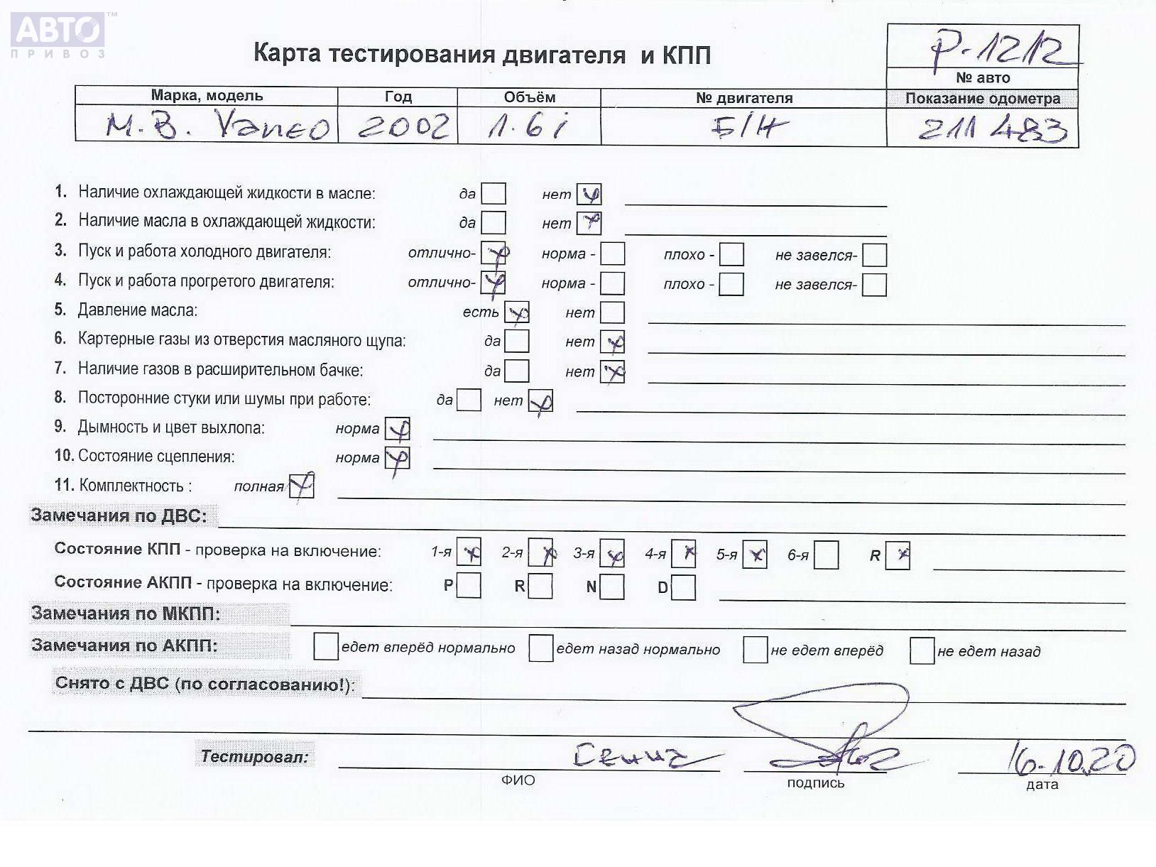 | Марка / Модель / Год: | Mercedes Vaneo W414 (2001-2006) 2002 |