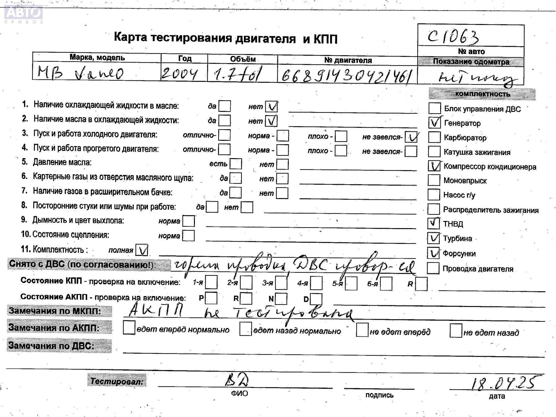 | Марка / Модель / Год: | Mercedes Vaneo W414 (2001-2006) 2004 |