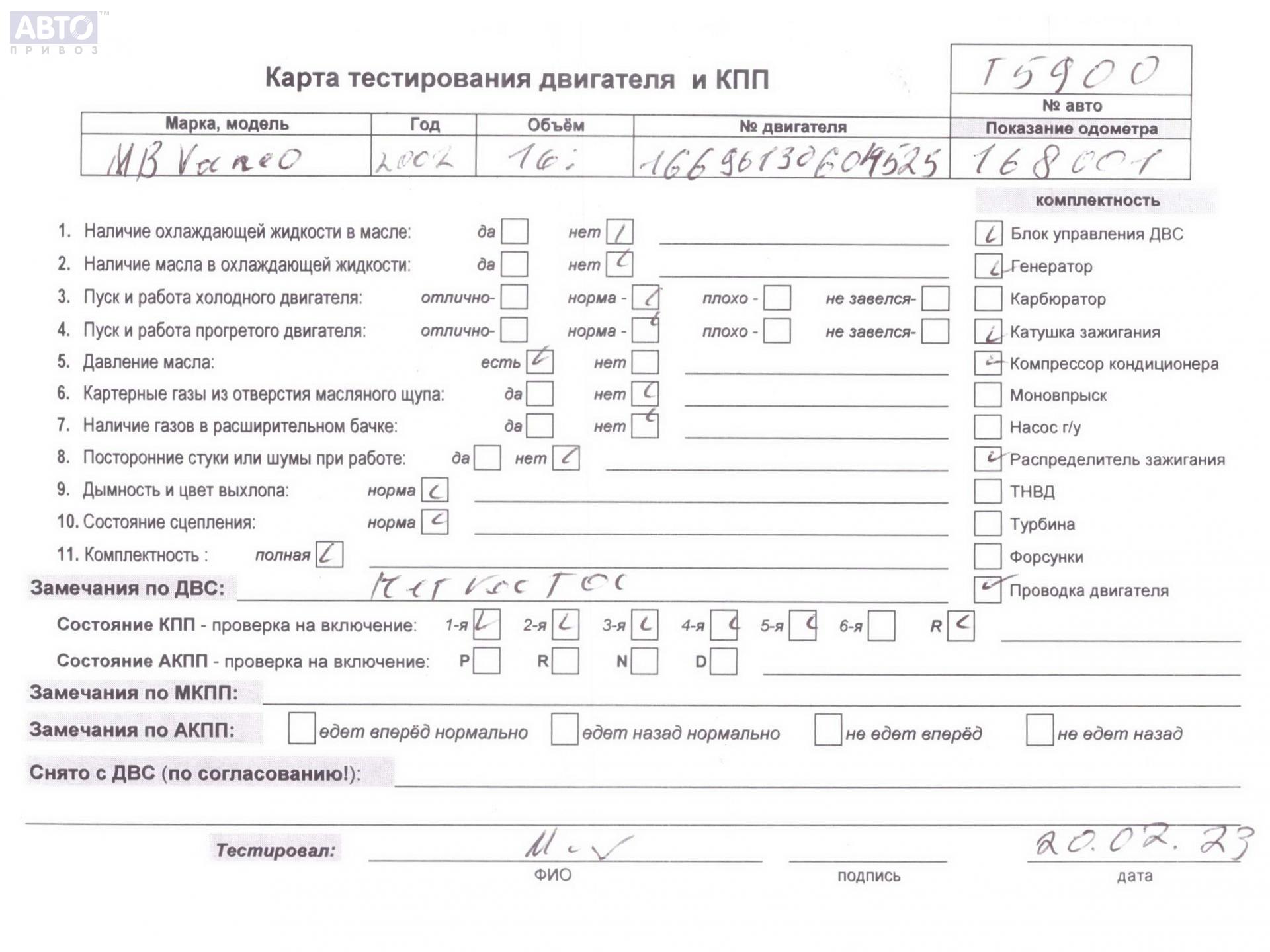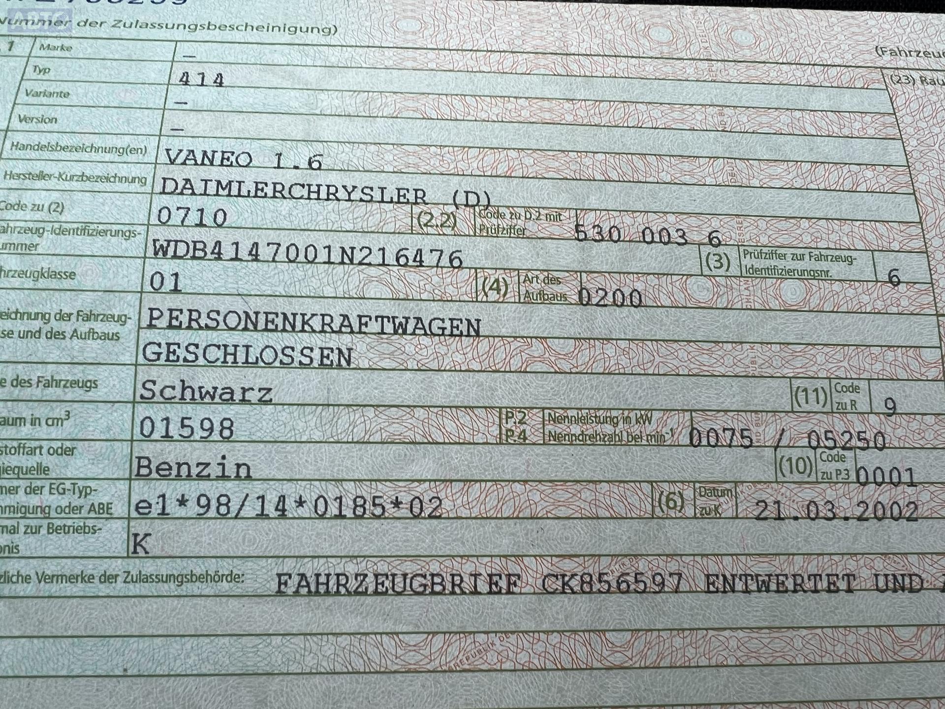 | Марка / Модель / Год: | Mercedes Vaneo W414 (2001-2006) 2002 |