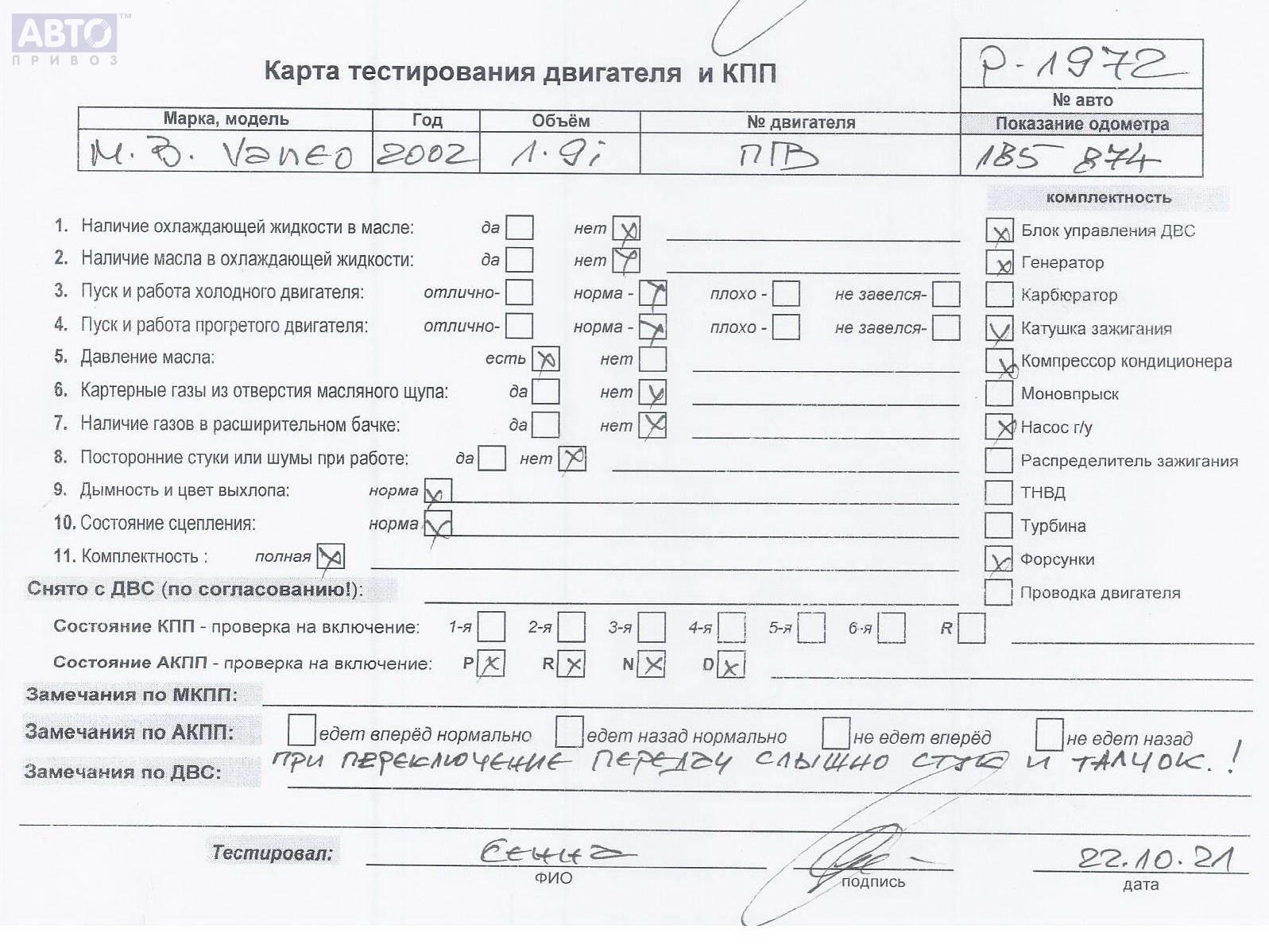| Автомобиль / VIN: | P1972 WDB4147001N211016 |