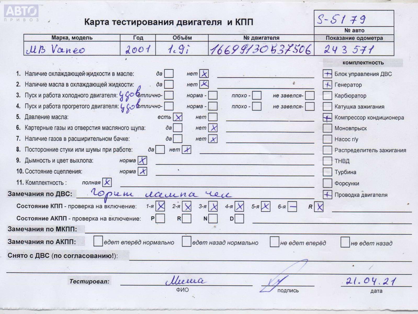 | Автомобиль / VIN: | S5179 WDB4147001N201005 |