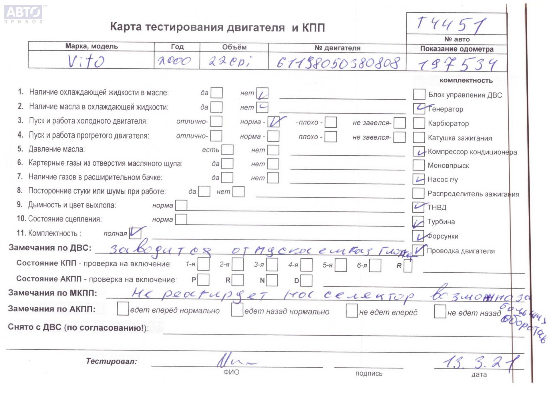 | Марка / Модель / Год: | Mercedes Vito-1 W638 (1996-2003) 2001 |